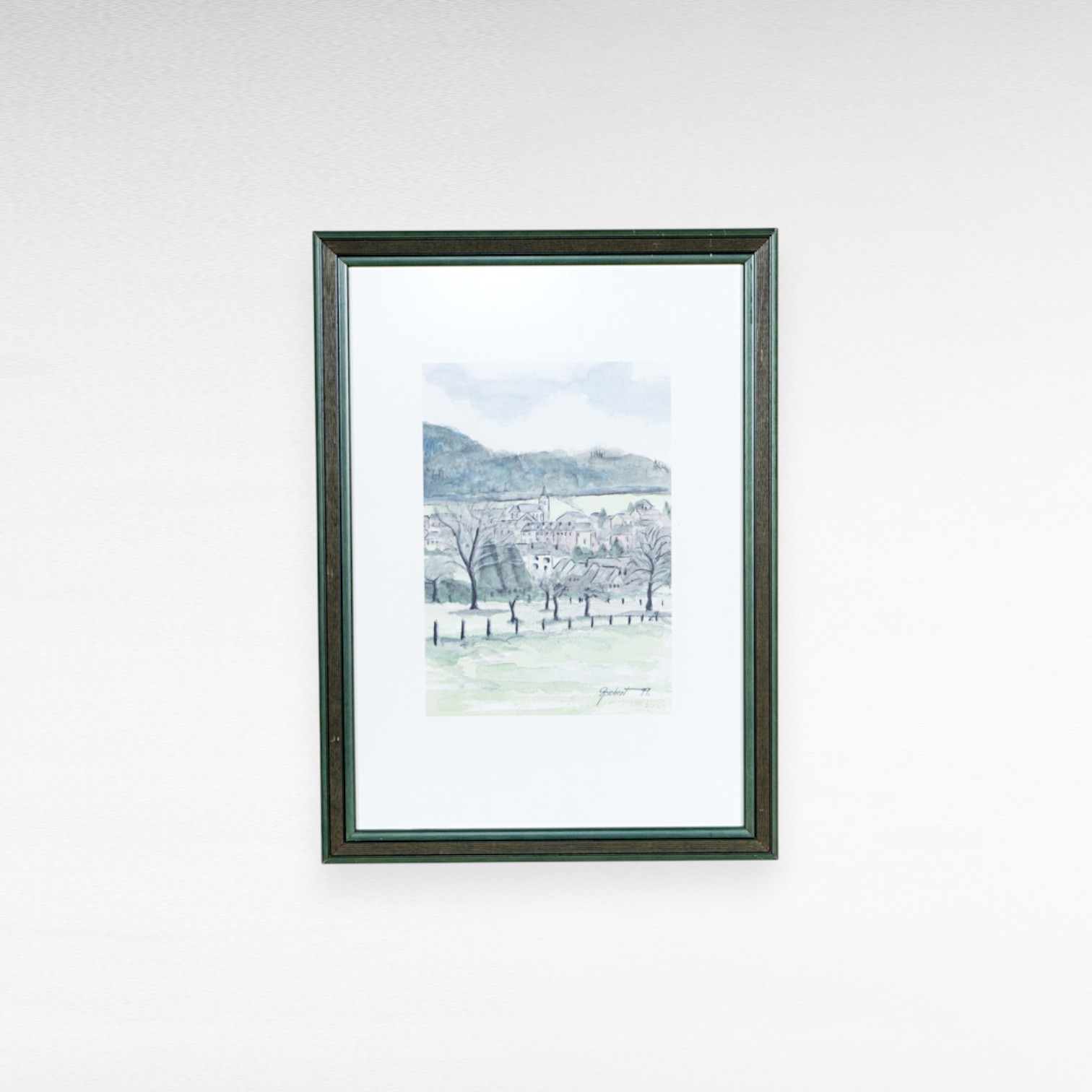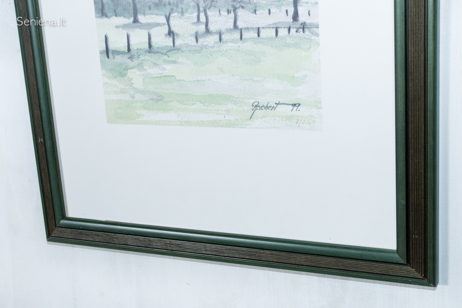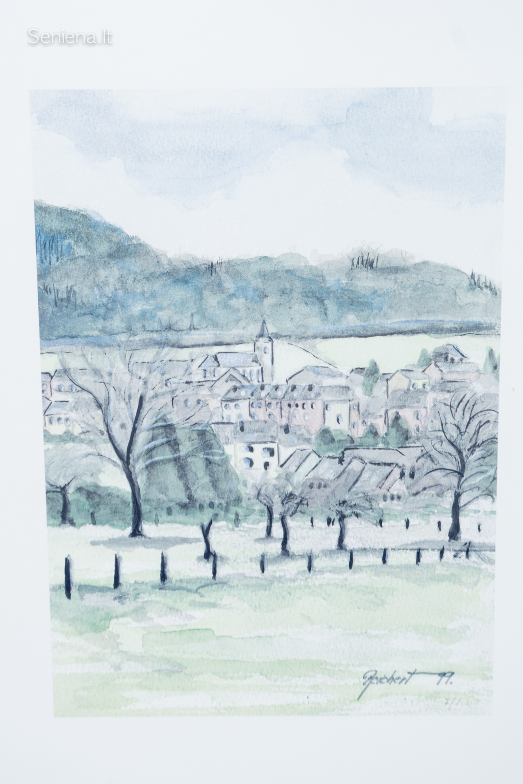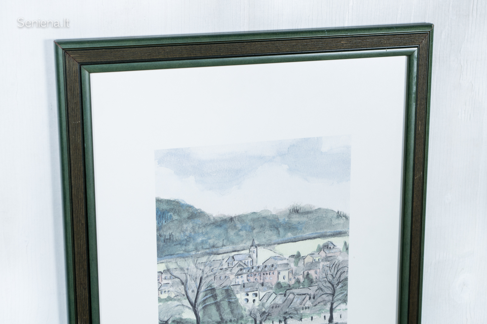 Akvarelės spauda su Liuksemburgo kaimo vaizdu, datuota 1999 m., numeruota 7/200. Įrėminta, su stiklu.