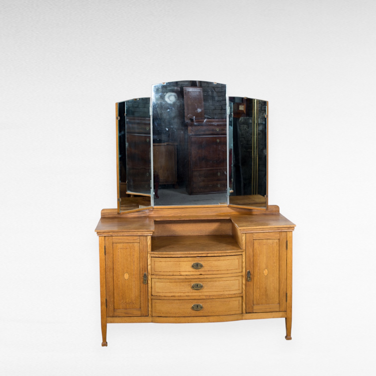 Antikvarinė kosmetinė komoda, iš ąžuolo masyvo ir faneruotės.