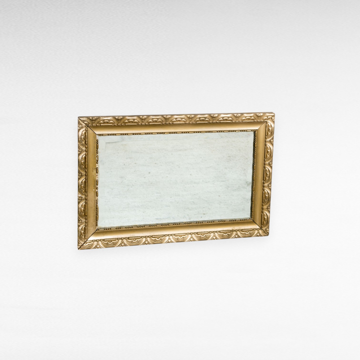Antikvarinis stačiakampis sieninis veidrodis paauksuotu rėmu.