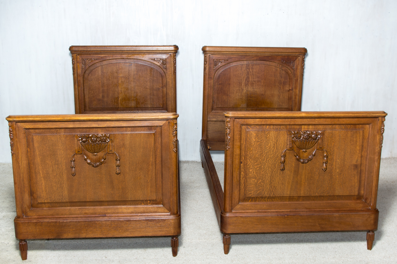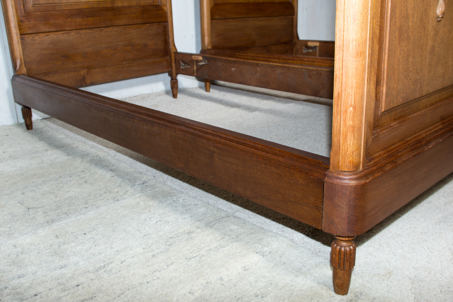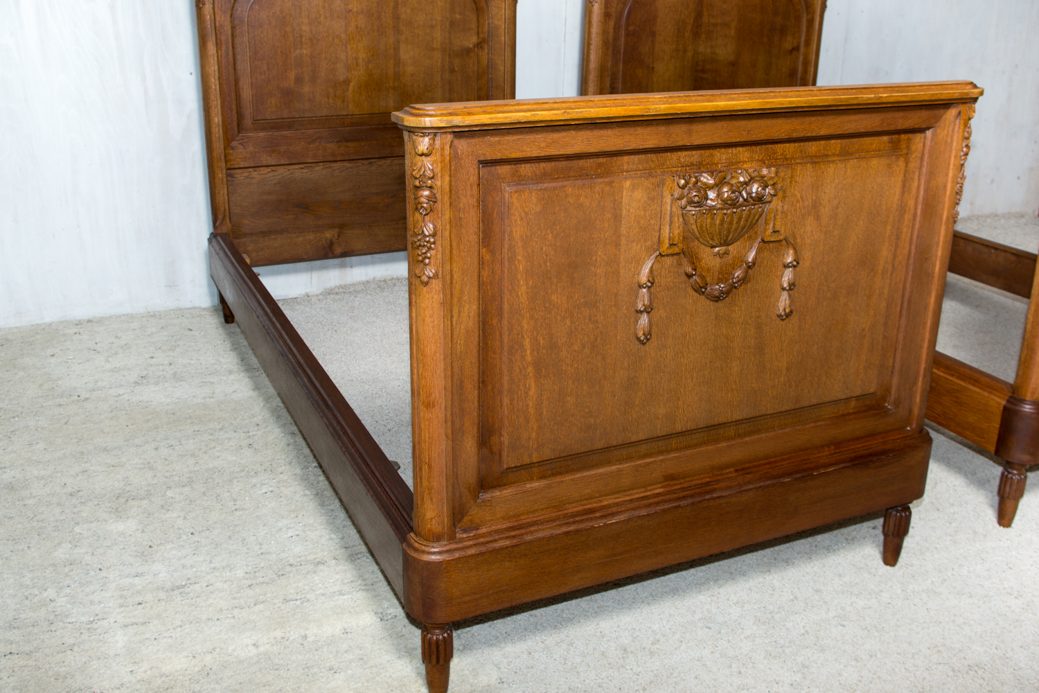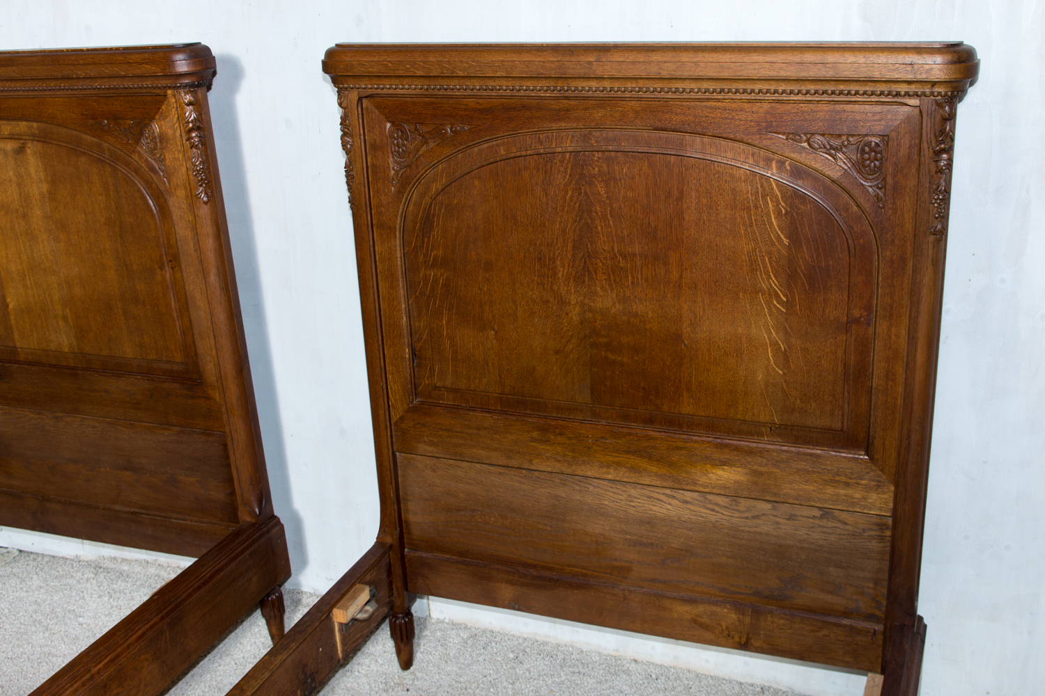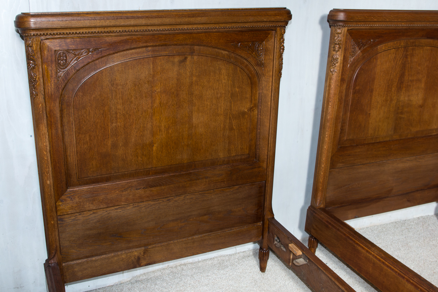 Ąžuolinės vienvietės lovos. Geros būklės. Parvežta iš Prancūzijos