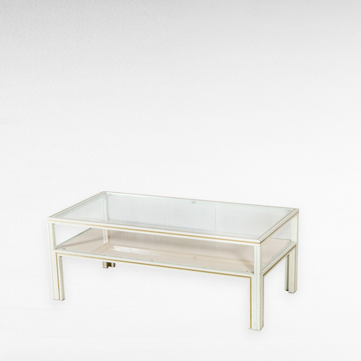 Baltas staliukas su stiklu ir metaliniu rėmu. Dizaineris prancūzas Pierre Vandel. 1970 – 1979 m.