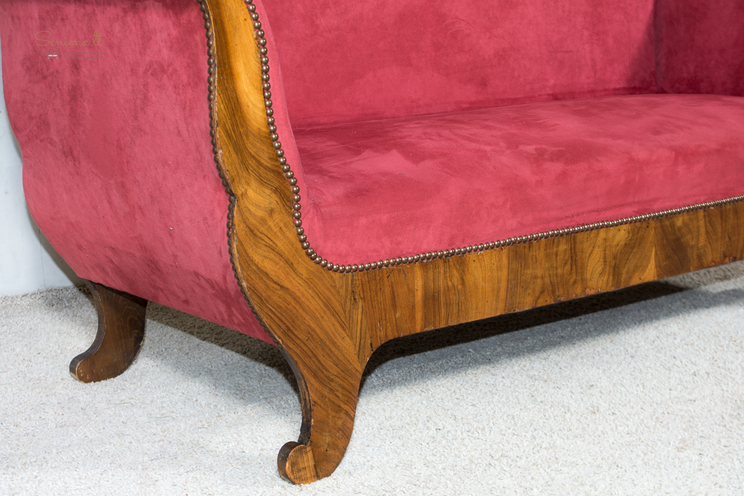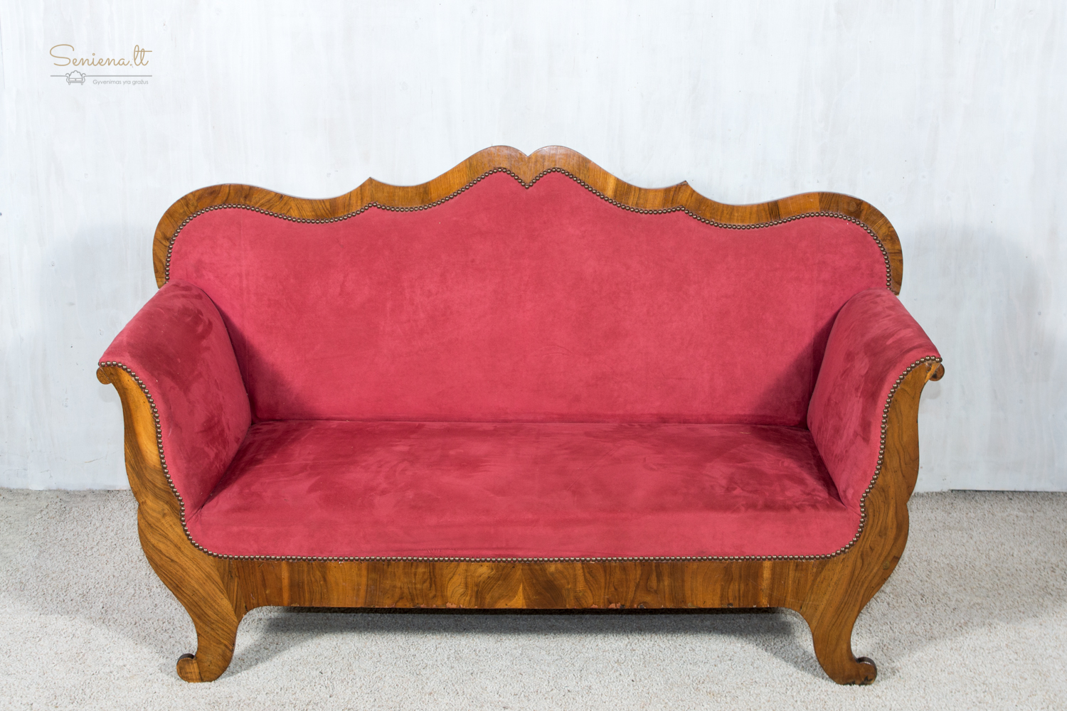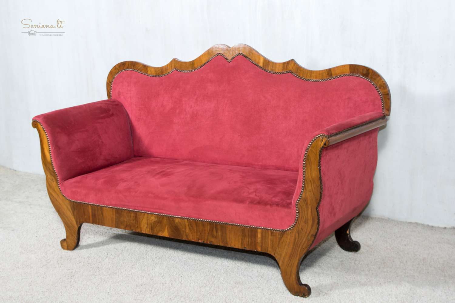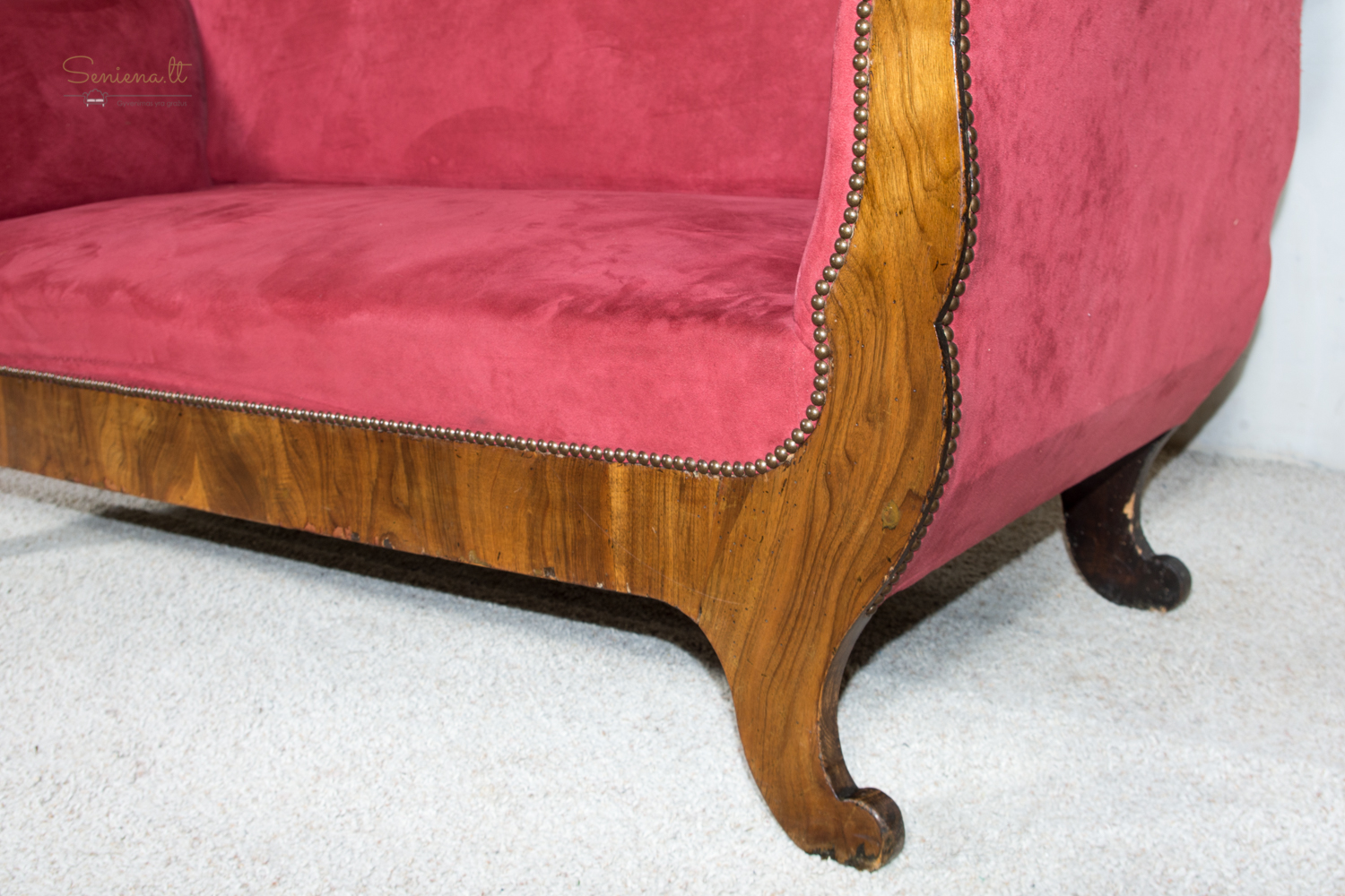 Biedermejerio stiliaus šviesi kanape/sofa. Barchato bordo spalvos gobelenas Geros būklės. Parvežta iš Prancūzijos