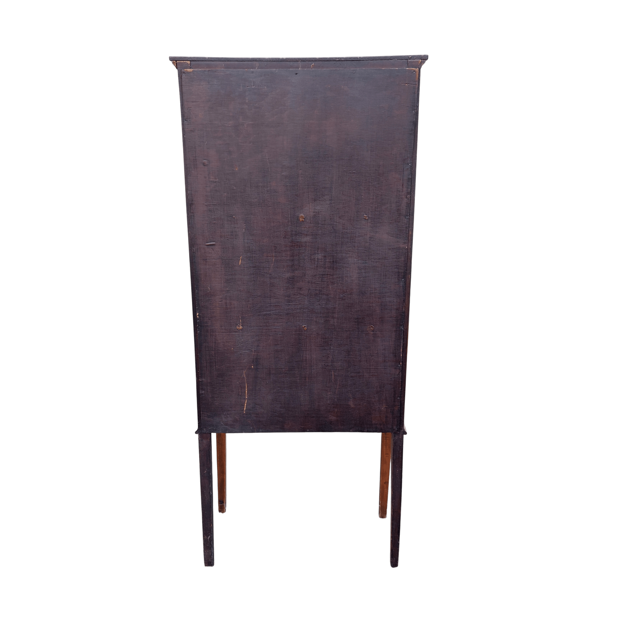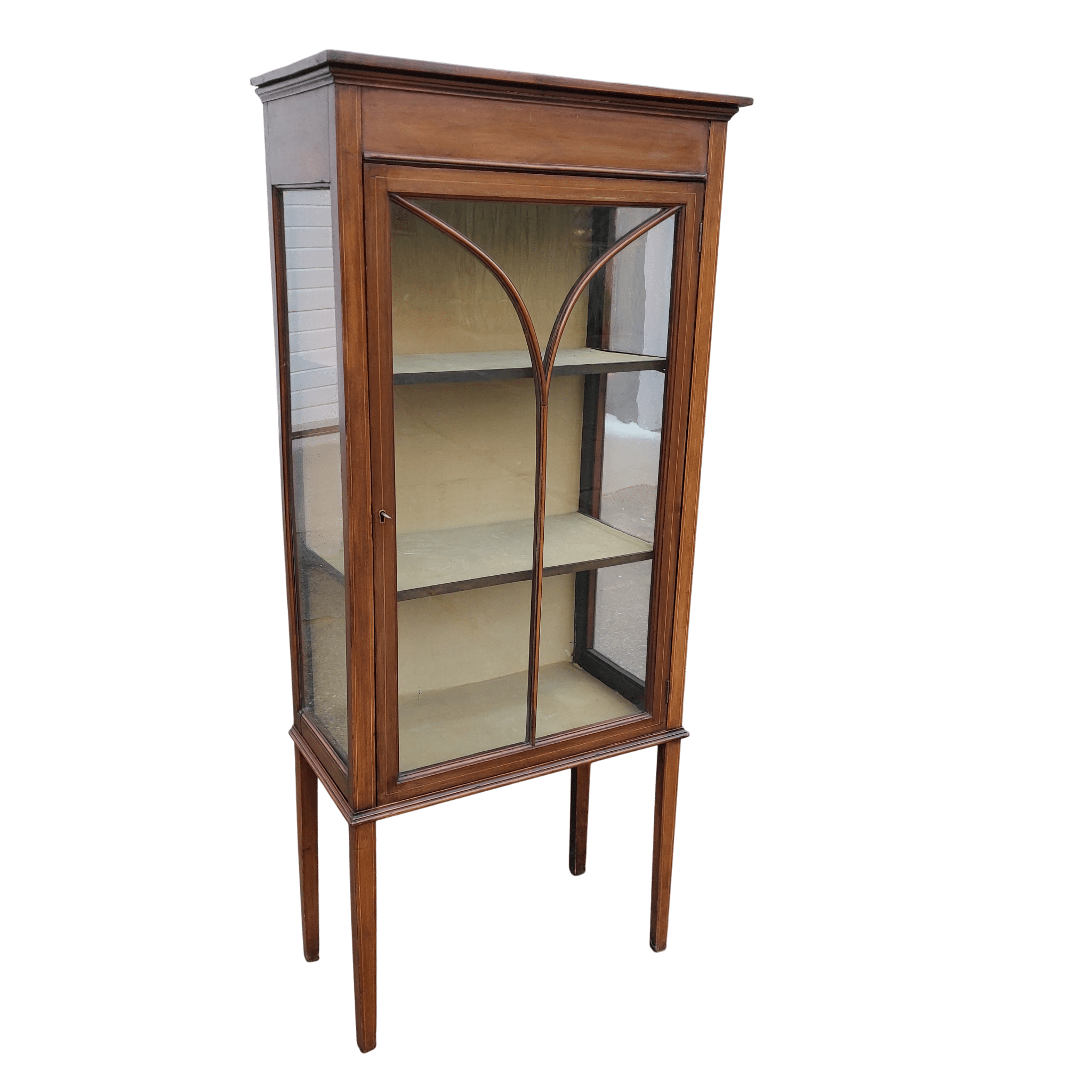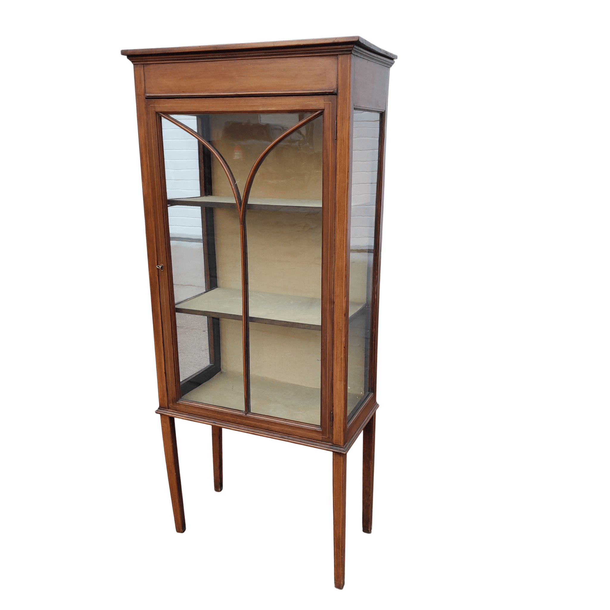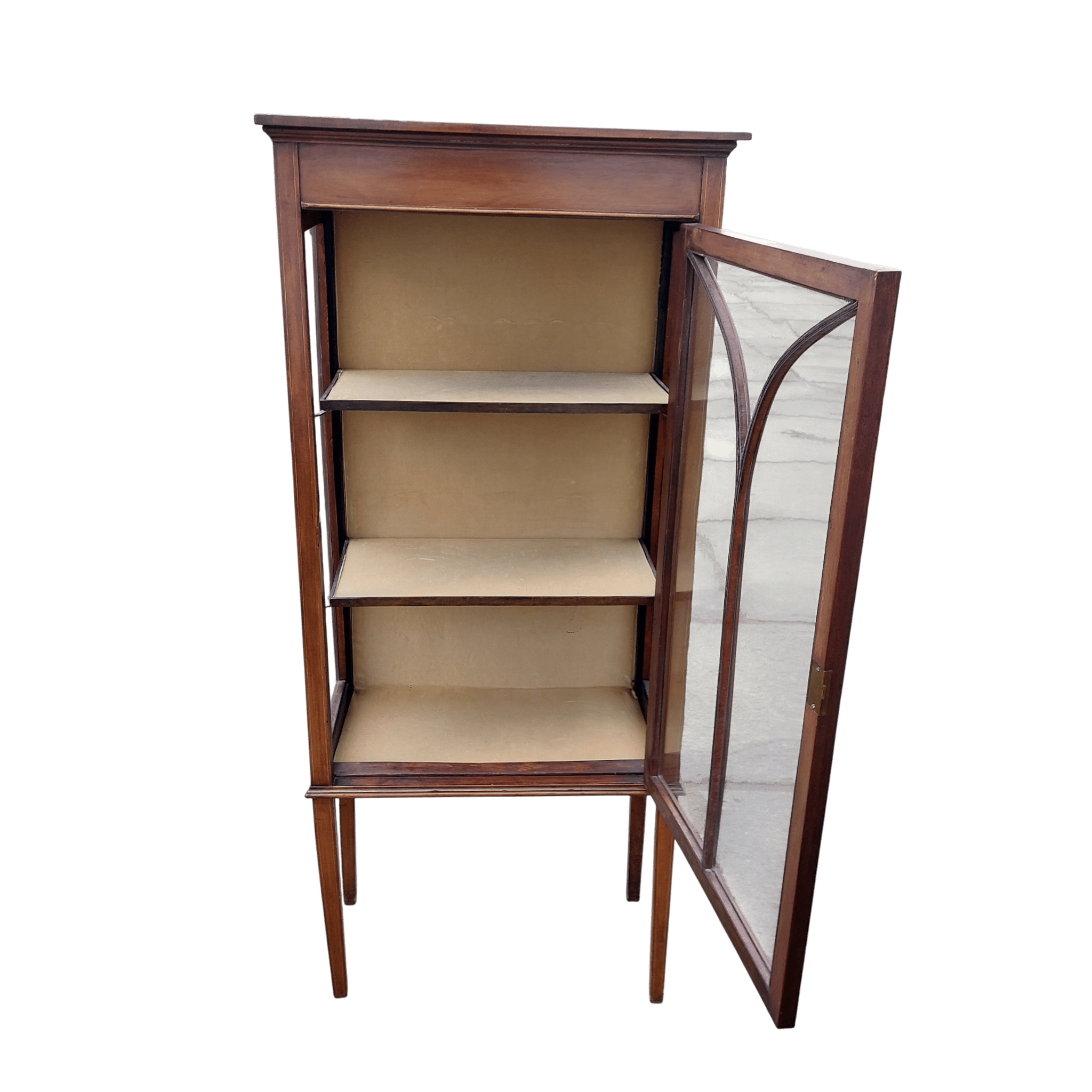 Edvardo laikotarpio nedidukė vitrina. Pagaminta apie 1900–1910 m. Lengvos konstrukcijos, su stiklintomis durelėmis ir šonais. Viduje – trys lentynos, tinkamos smulkiems daiktams laikyti. Kojelės siaurėjančios, proporcijos grakščios, būdingos Edvardo laikotarpiui. Matosi naudojimo žymės, viena kojelė šiek tiek išsikreipusi, tačiau vitrina išlieka gan stabili. Parvežta iš Prancūzijos.