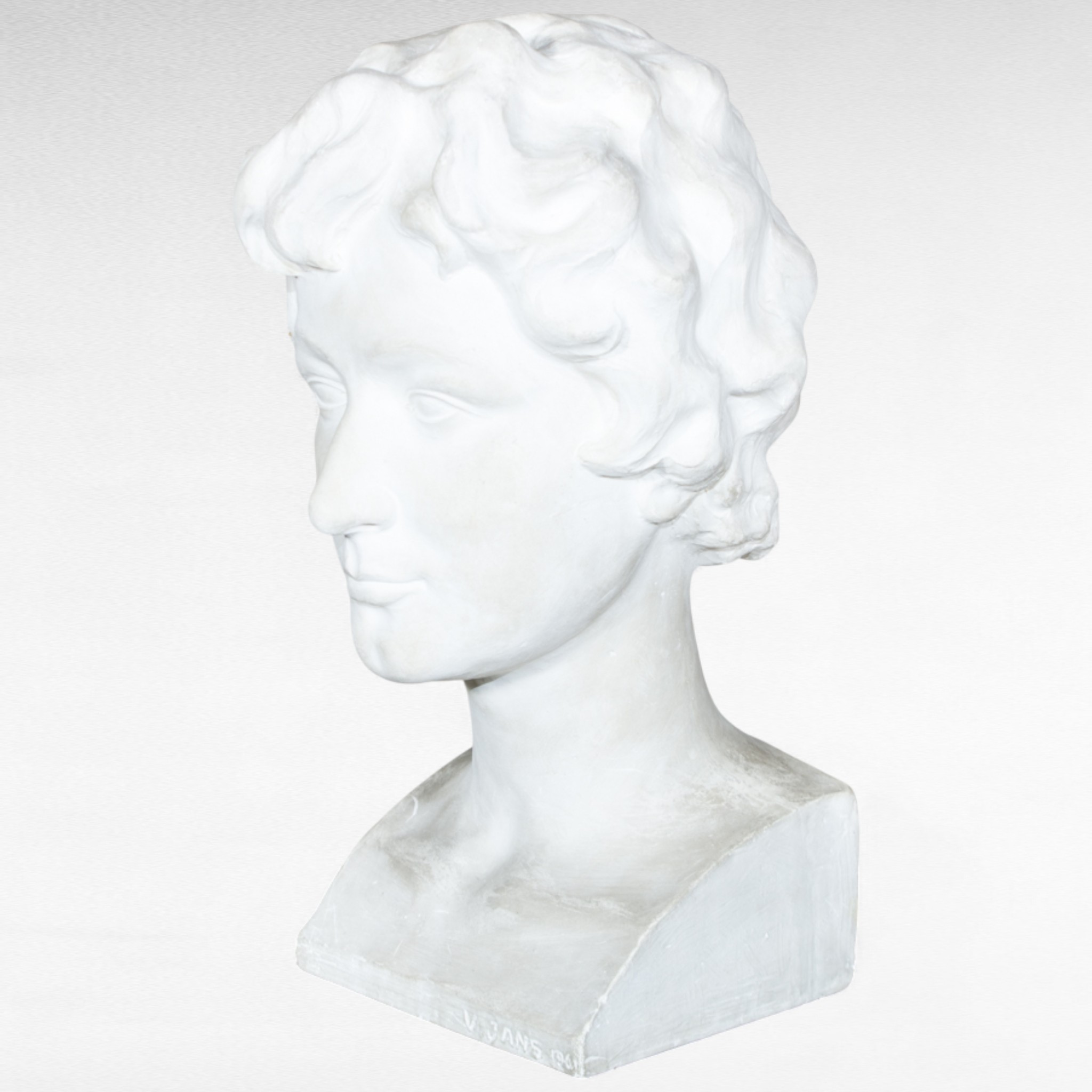 Gipsinis biustas ženklintas „V. IANS“ 1961 m. Skulptūra perteikia vyro veido bruožus su subtilia akademinio realizmo stilistika, būdinga XX a. vidurio meno tradicijai. Švelnios linijos ir idealizuoti bruožai suteikia kūriniui ramybės bei santūrumo pojūtį. Parvežta iš Prancūzijos Pagamintas iš kokybiško gipso, biustas puikiai tiks kaip akcentas interjere  ant komodos, konsolės ar knygų lentynos.