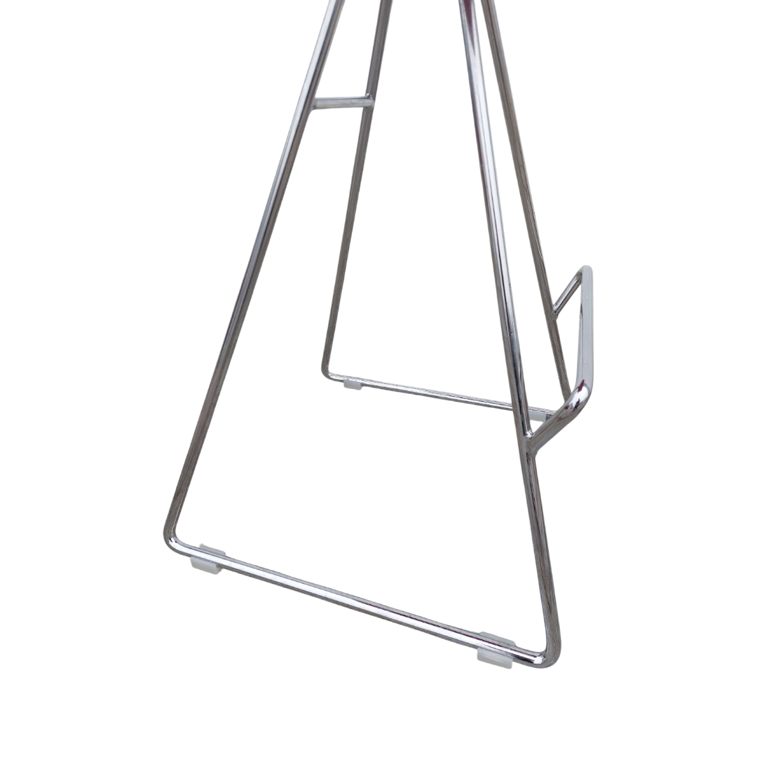 Plastiška sėdimoji dalis iš poliuretano ir chromuoto metalo pagrindas. Moderni, bet turinti retro dvasios.