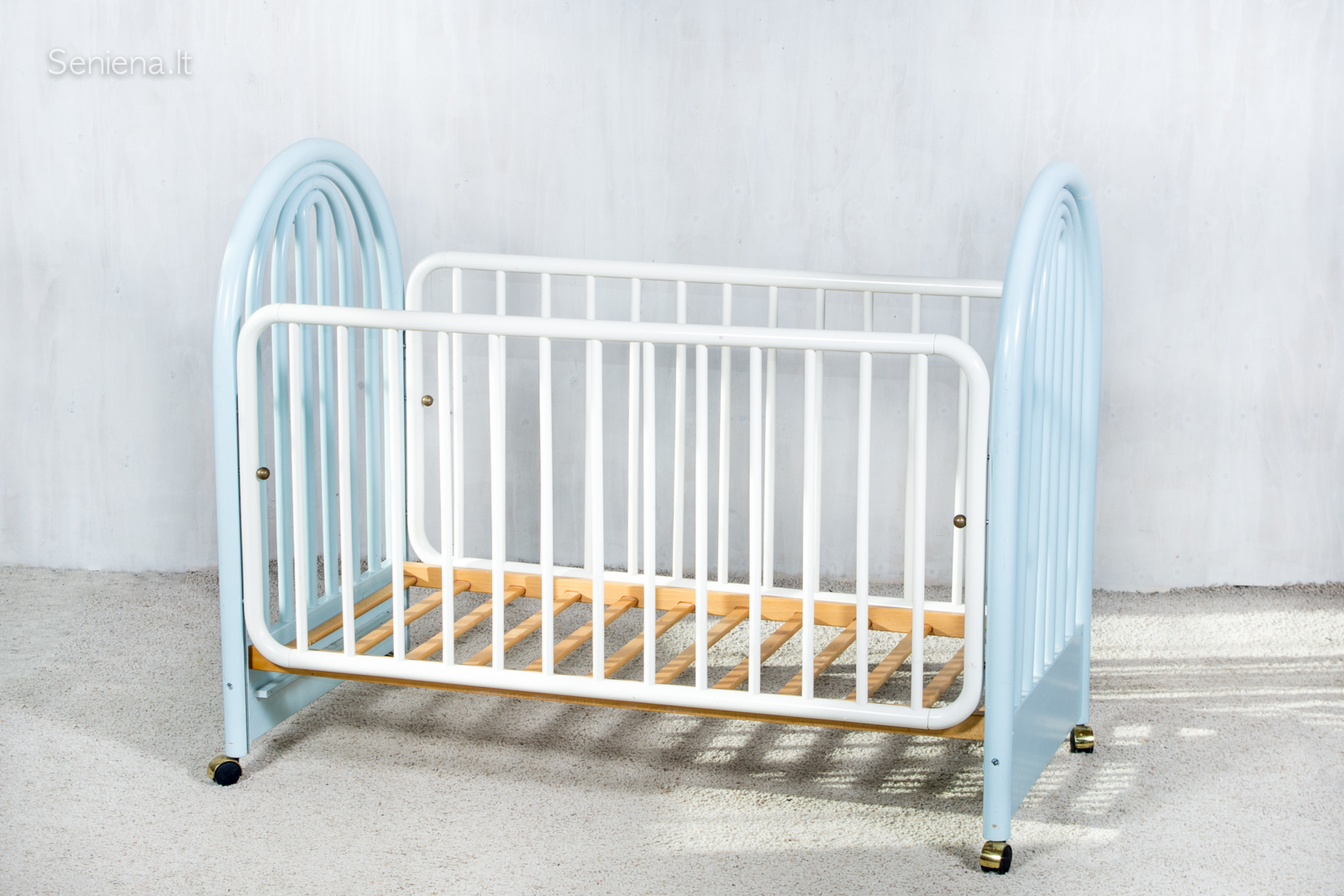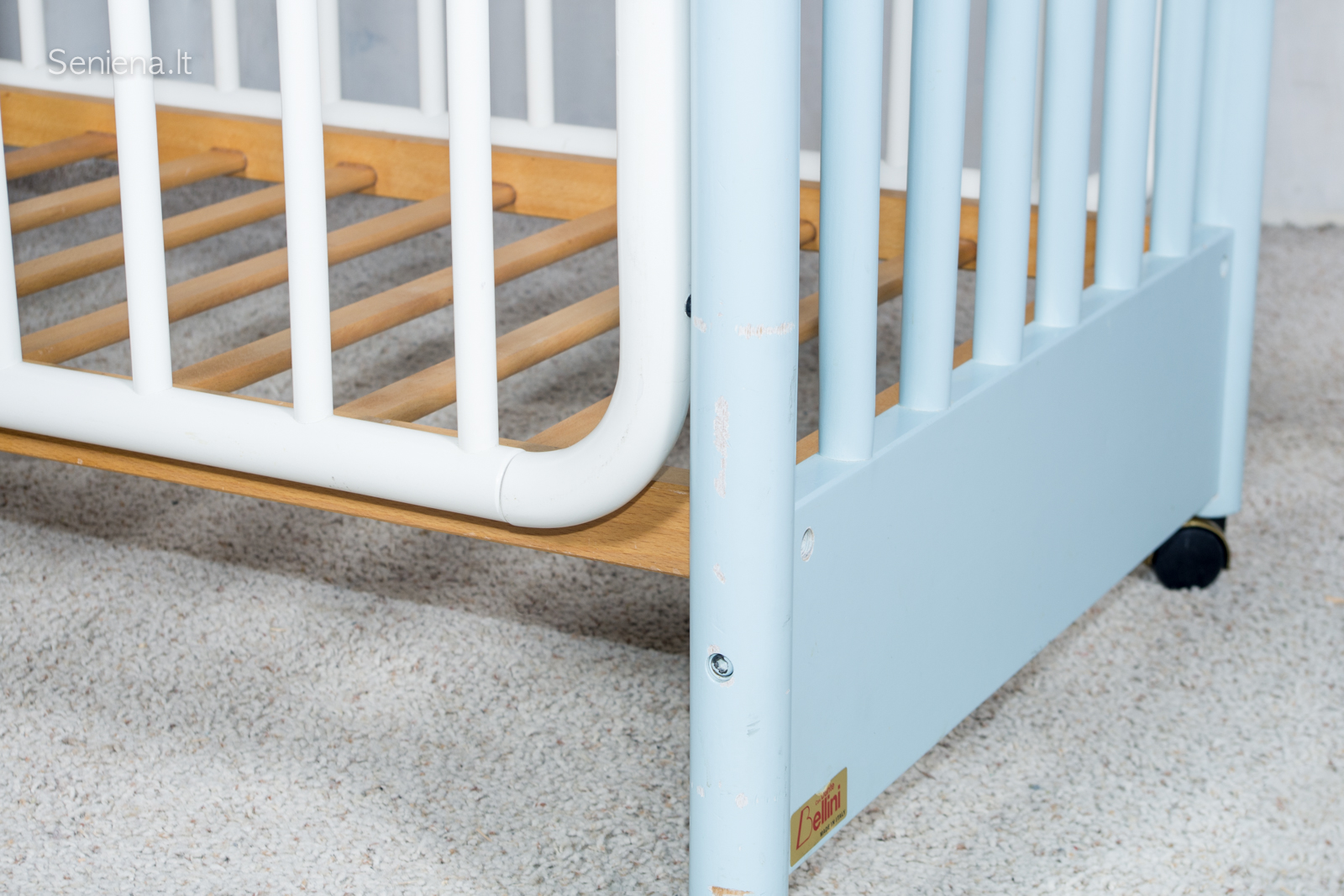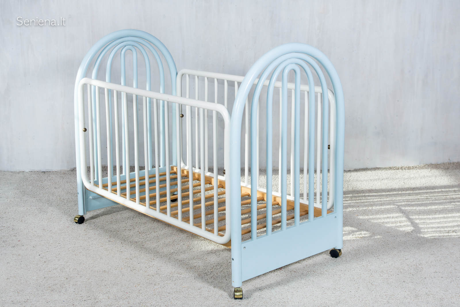 Itališka vaikiška lovytė „Bellini“ – dažyta medinė konstrukcija su švelniai lenktomis formomis. Apatinė dalis iš medžio, šoninės grotelės reguliuojamos. Būklė gera, keliose vietose matomi dažų pasitrynimo žymės. Gaminta Italijoje, apie 1970–1980 m.