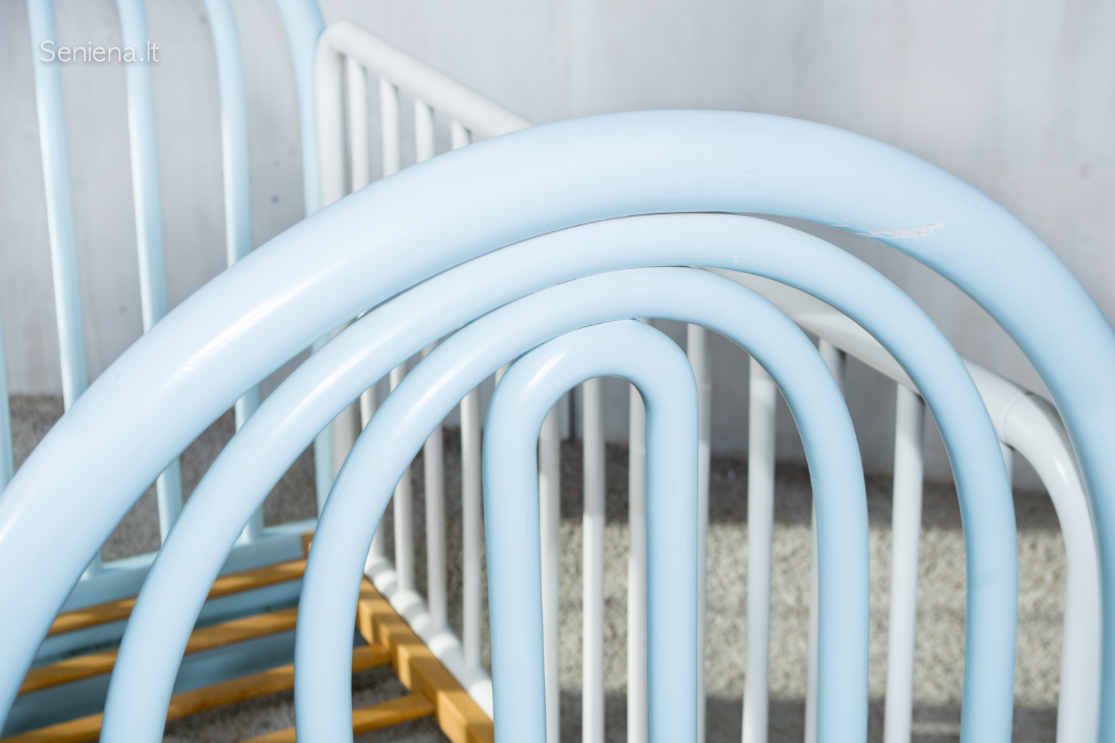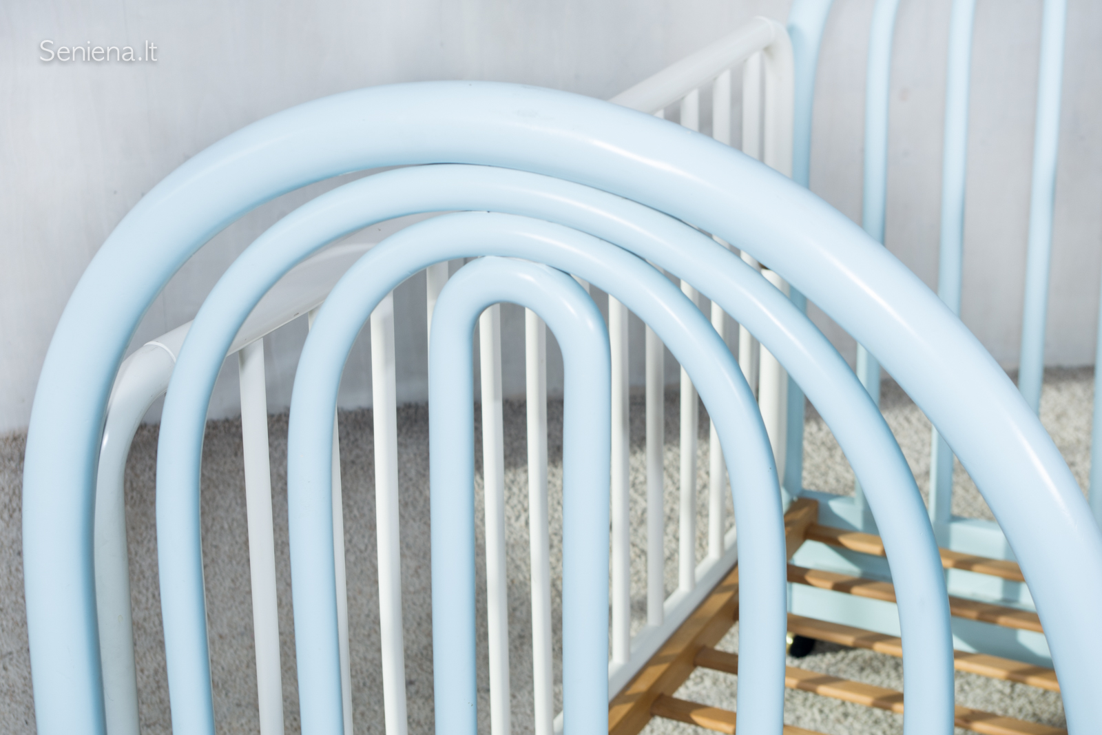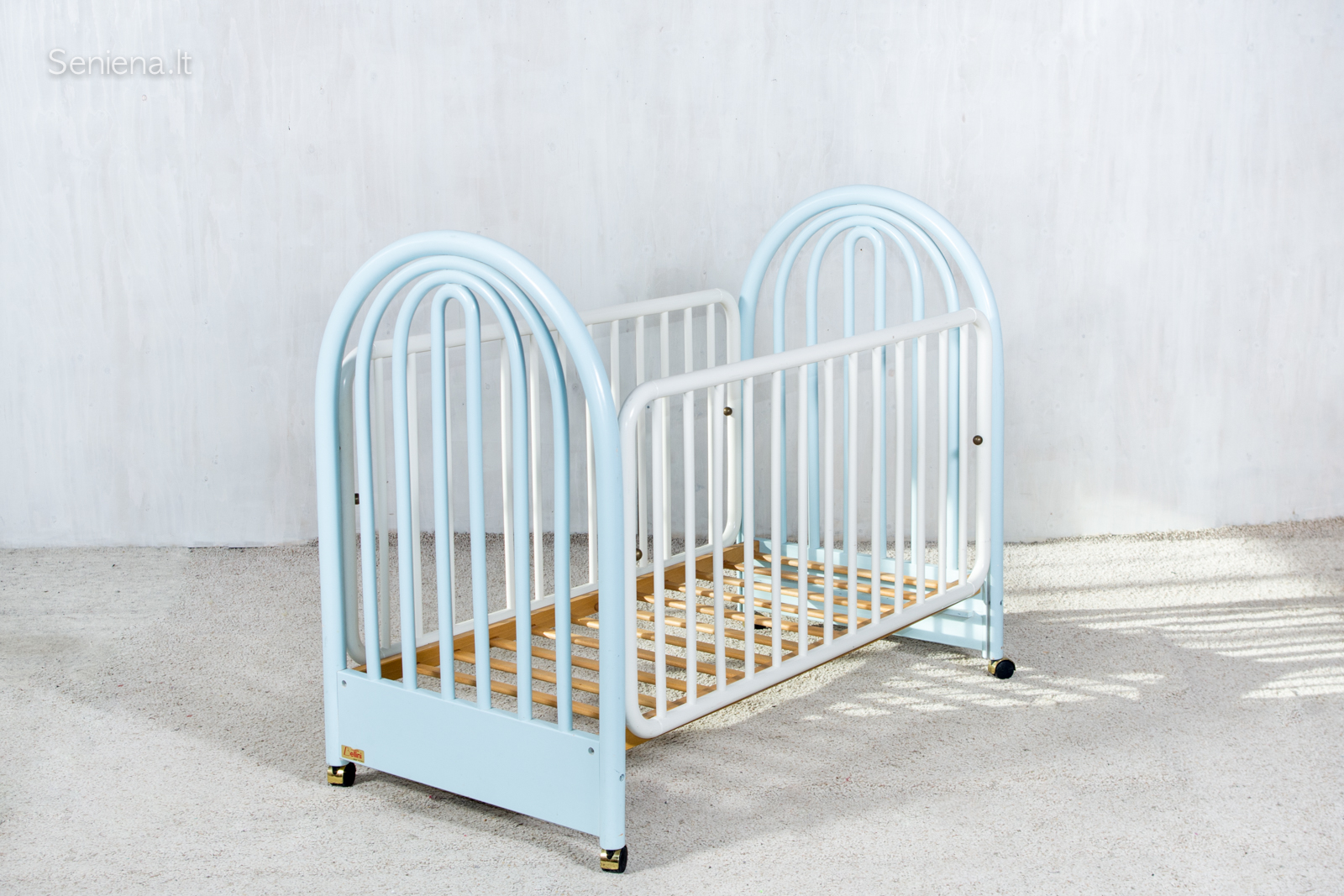 Itališka vaikiška lovytė „Bellini“ – dažyta medinė konstrukcija su švelniai lenktomis formomis. Apatinė dalis iš medžio, šoninės grotelės reguliuojamos. Būklė gera, keliose vietose matomi dažų pasitrynimo žymės. Gaminta Italijoje, apie 1970–1980 m.