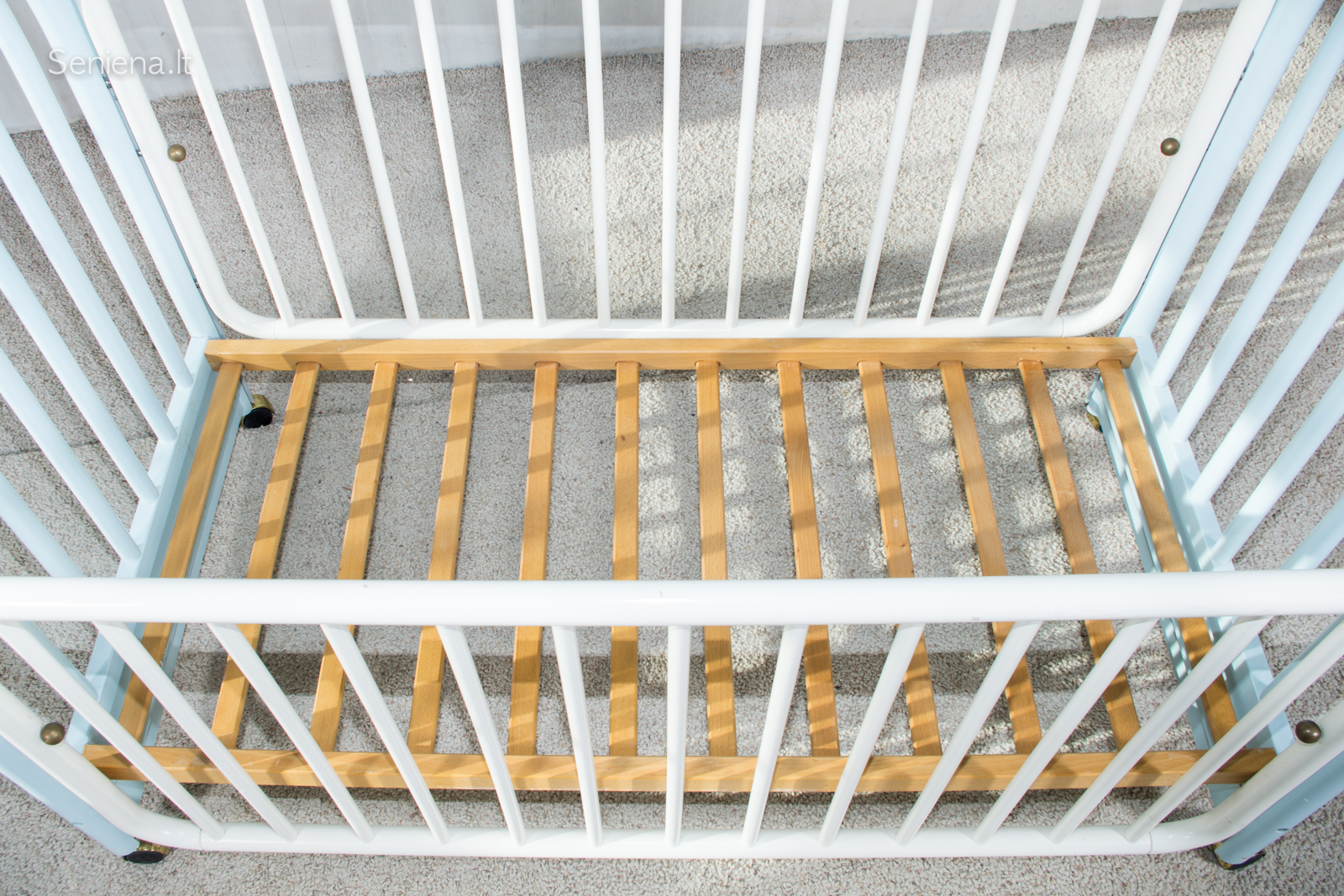 Matmenys: 136 x 70 cm, grotelių dydis 130 x 62 cm, aukštis iki pakeltų šoninių grotelių 83 cm, nuleistų – 68 cm
