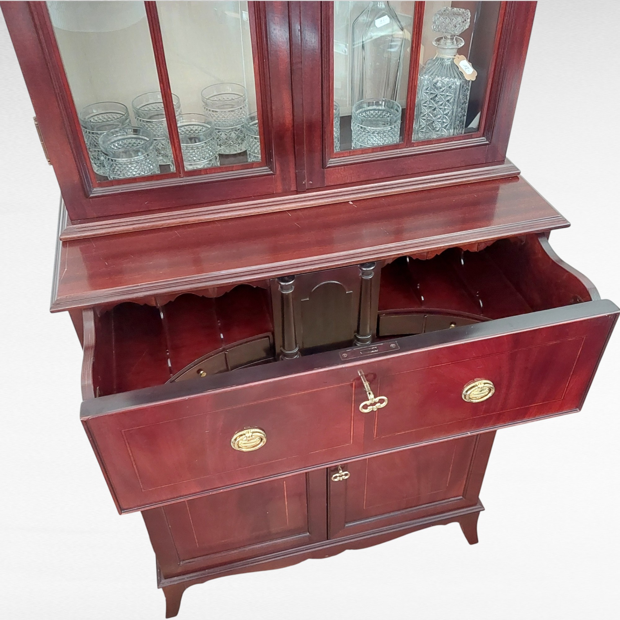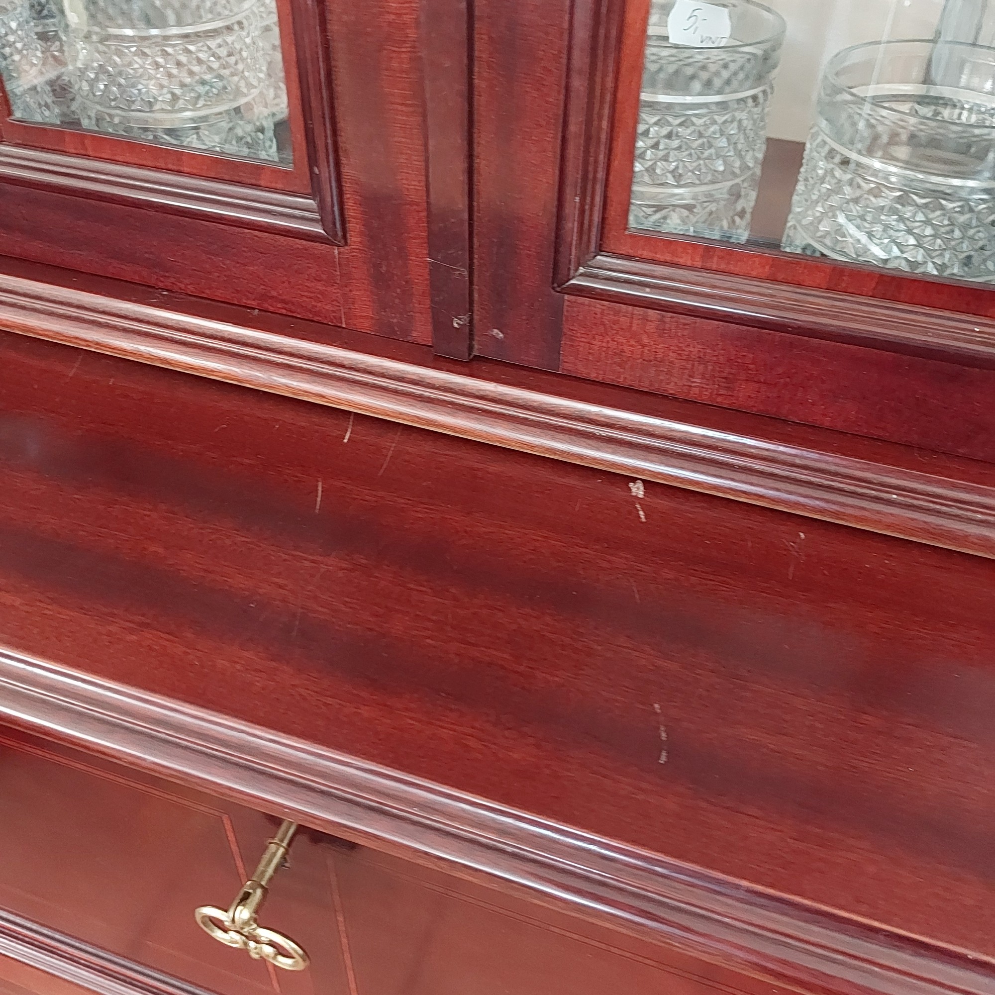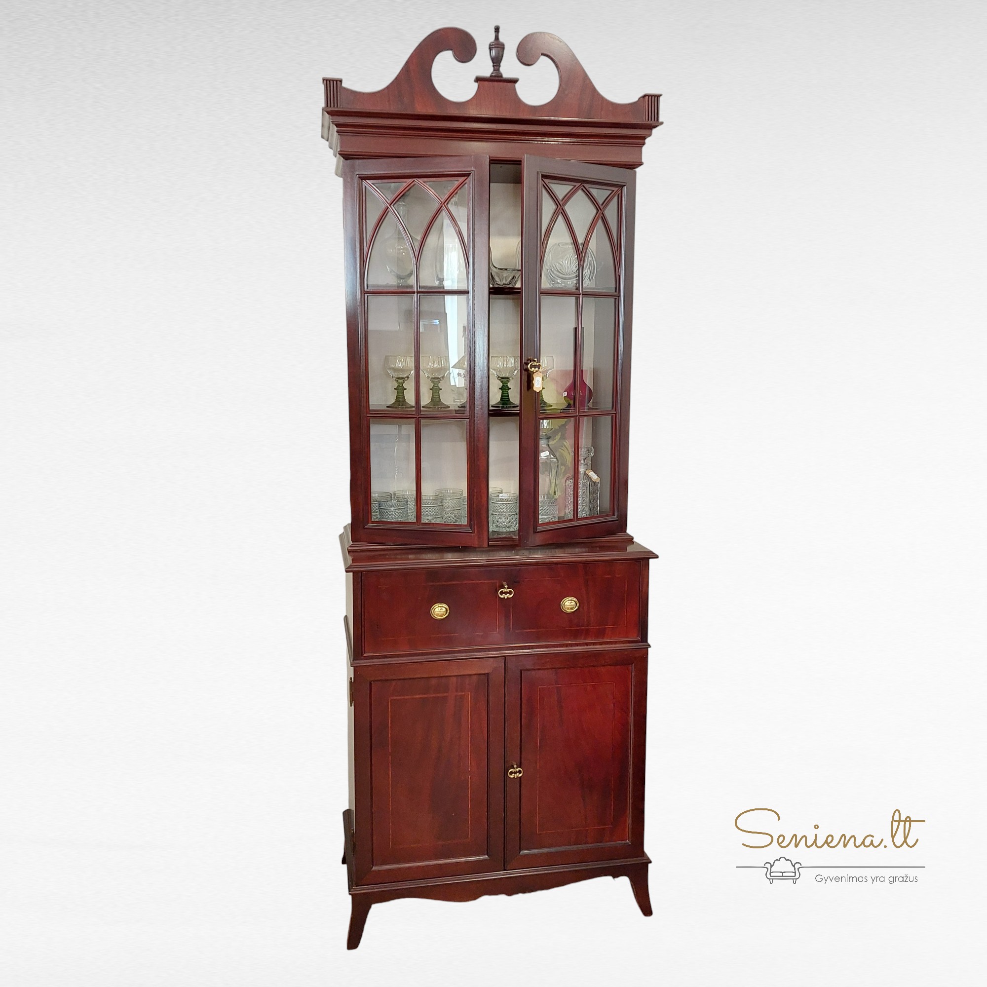 Klasikinio stiliaus itališkas sekreteras, kuriame dera vitrina, rašomasis stalas ir spintelė apačioje. Viršutinėje dalyje stiklinės durelės su lentynomis, viduryje išskleidžiama rašomoji dalis su oda dengtu paviršiumi, stalčiukais ir nišomis. Apačioje erdvi spintelė. Baldas blizgus, tvirtas, su veikiančiais užraktais. Patogus naudoti darbo kambaryje ar svetainėje.