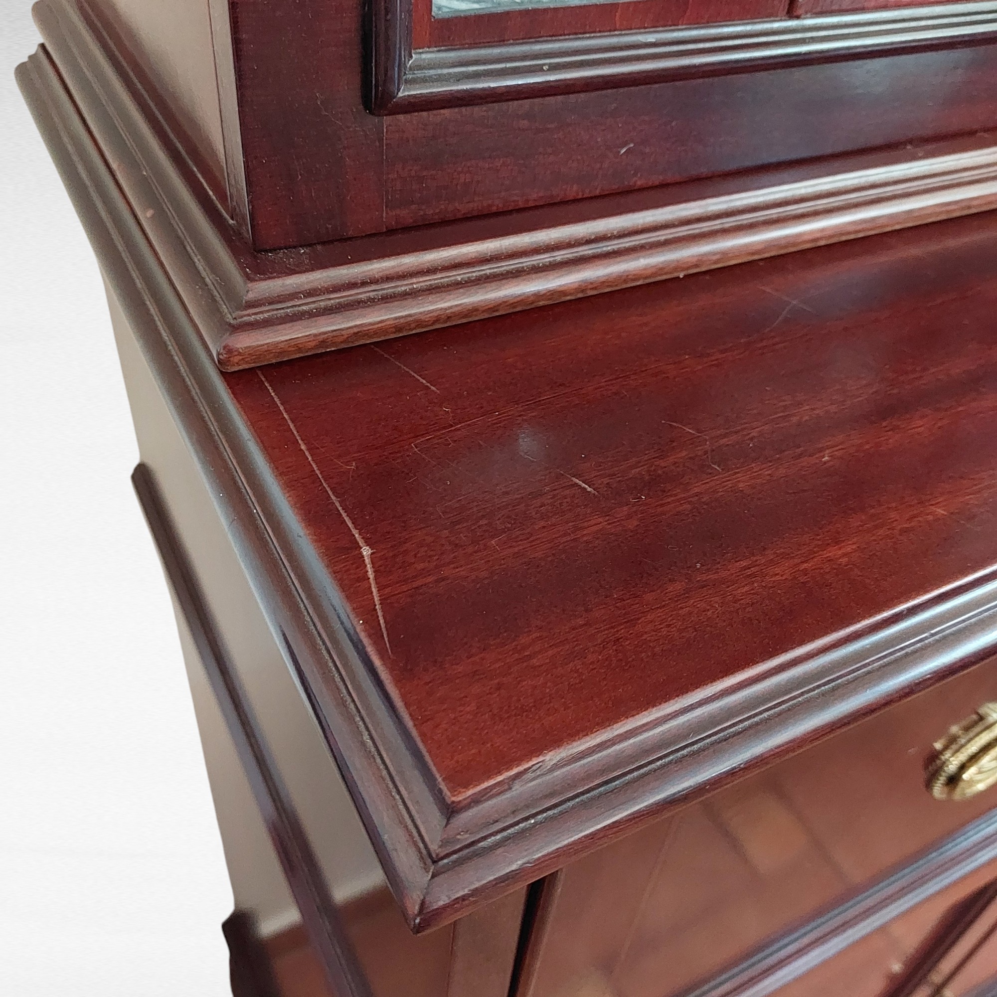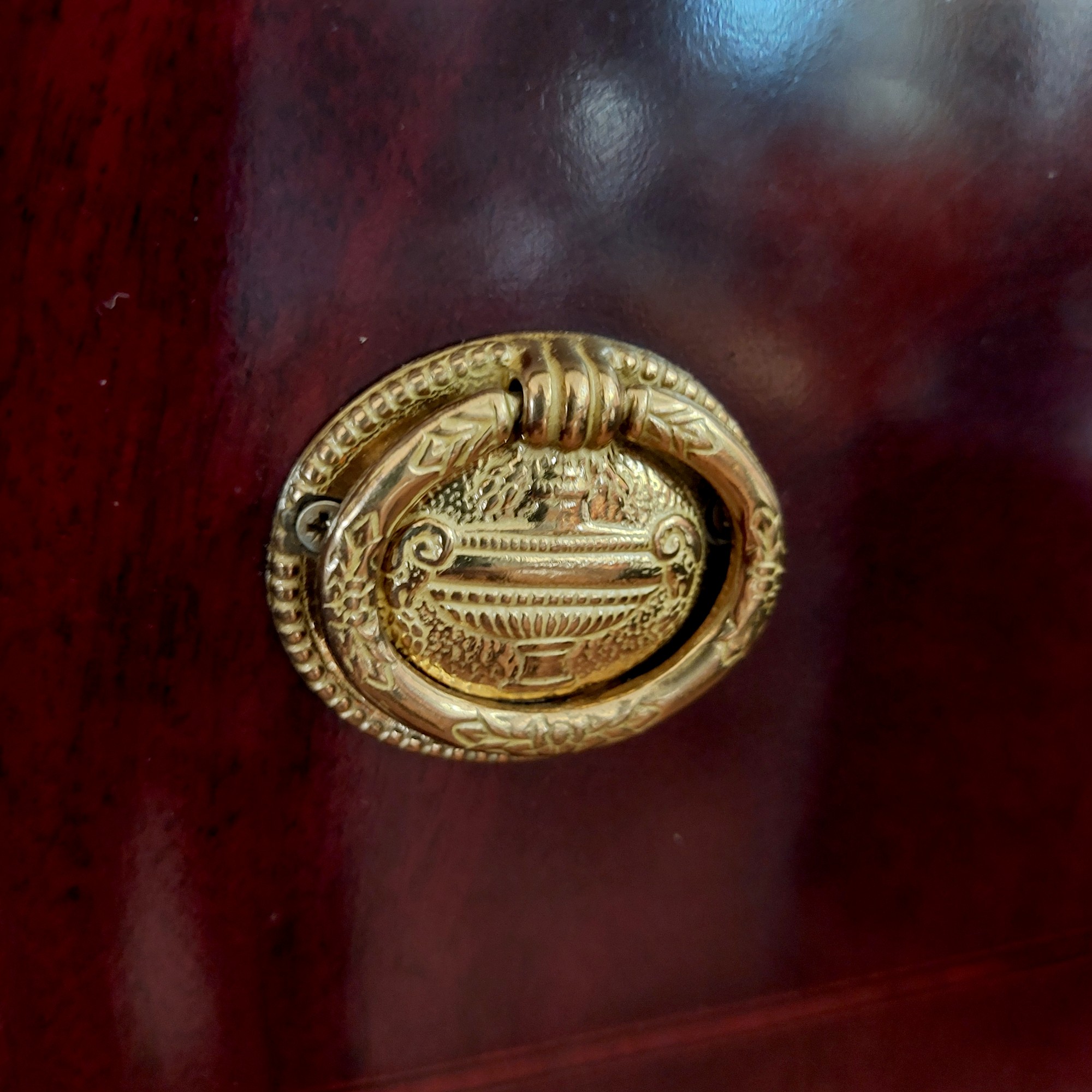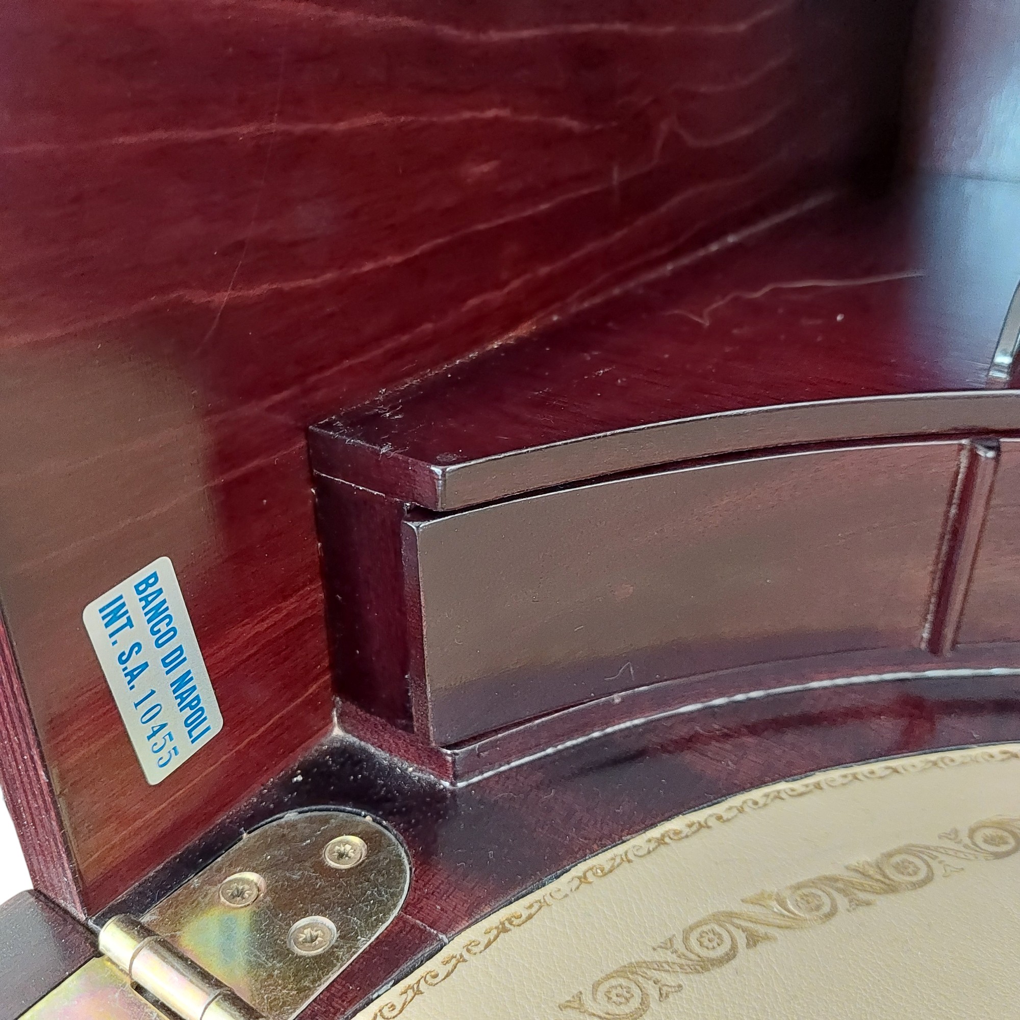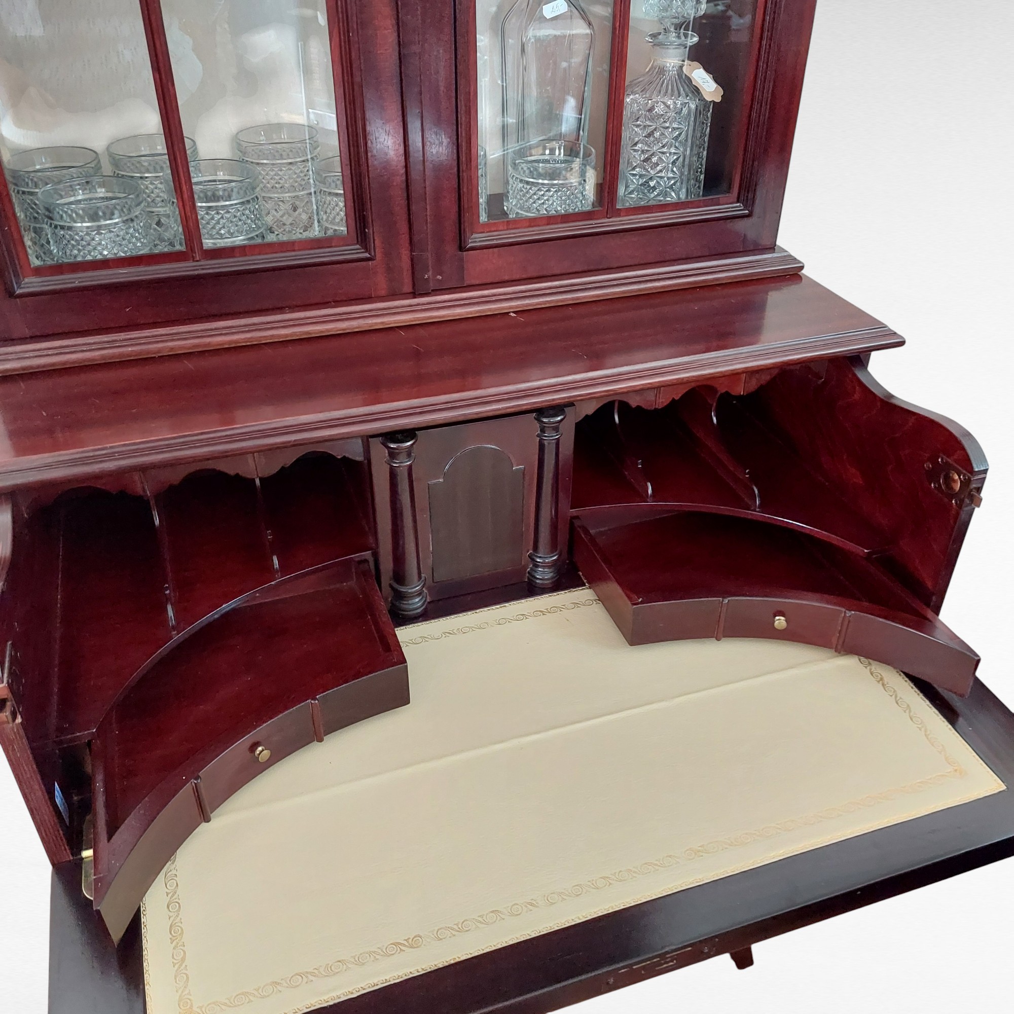Klasikinio stiliaus itališkas sekreteras, kuriame dera vitrina, rašomasis stalas ir spintelė apačioje. Viršutinėje dalyje stiklinės durelės su lentynomis, viduryje išskleidžiama rašomoji dalis su oda dengtu paviršiumi, stalčiukais ir nišomis. Apačioje erdvi spintelė. Baldas blizgus, tvirtas, su veikiančiais užraktais. Patogus naudoti darbo kambaryje ar svetainėje.