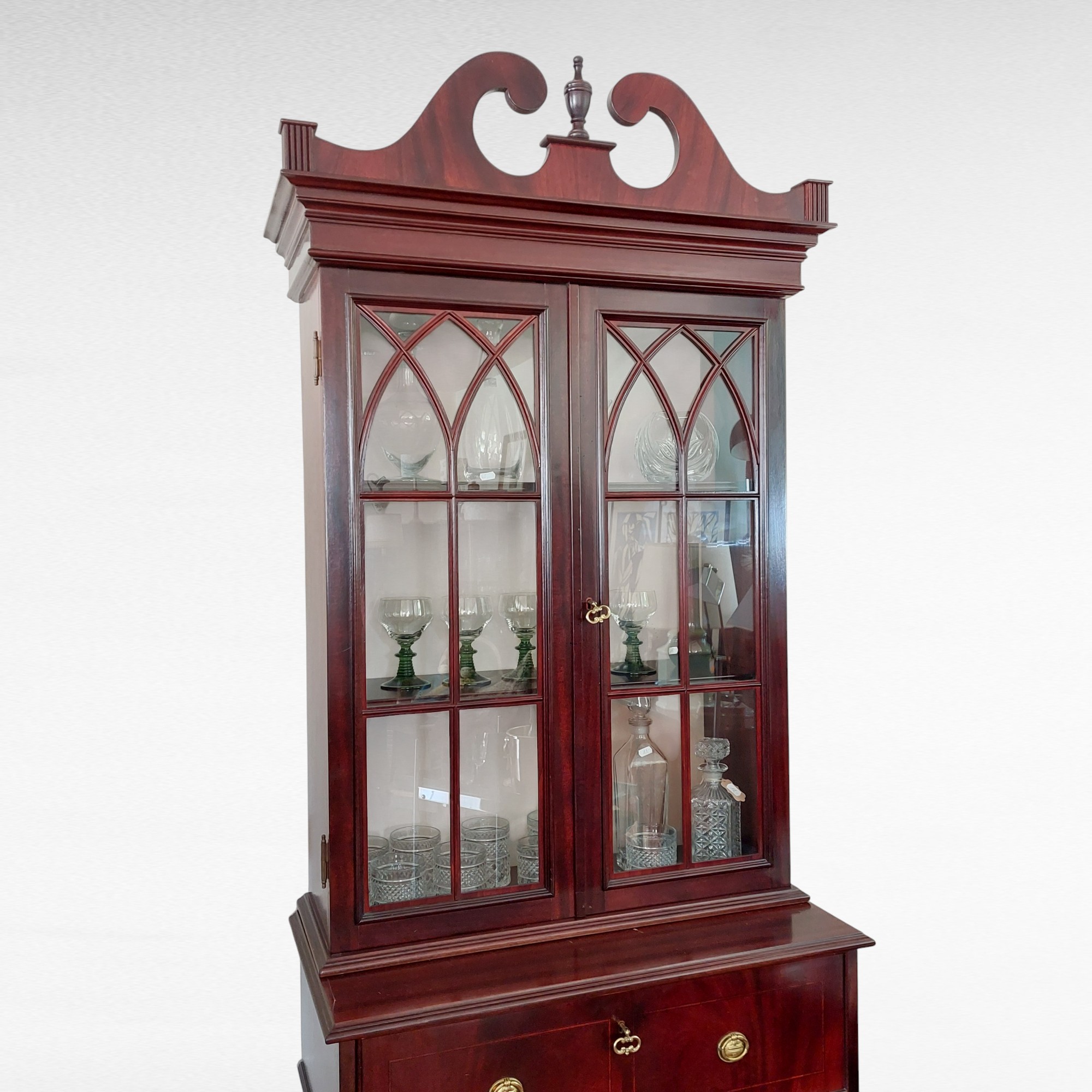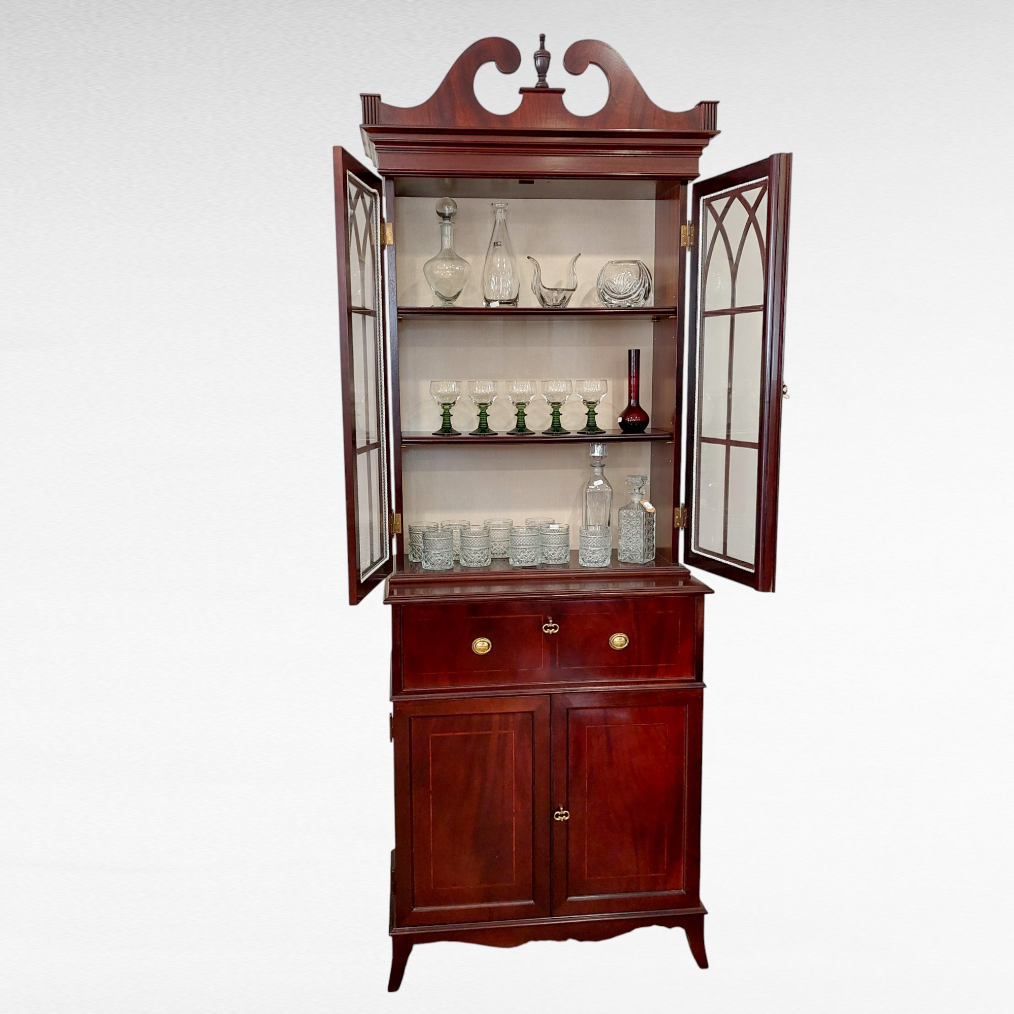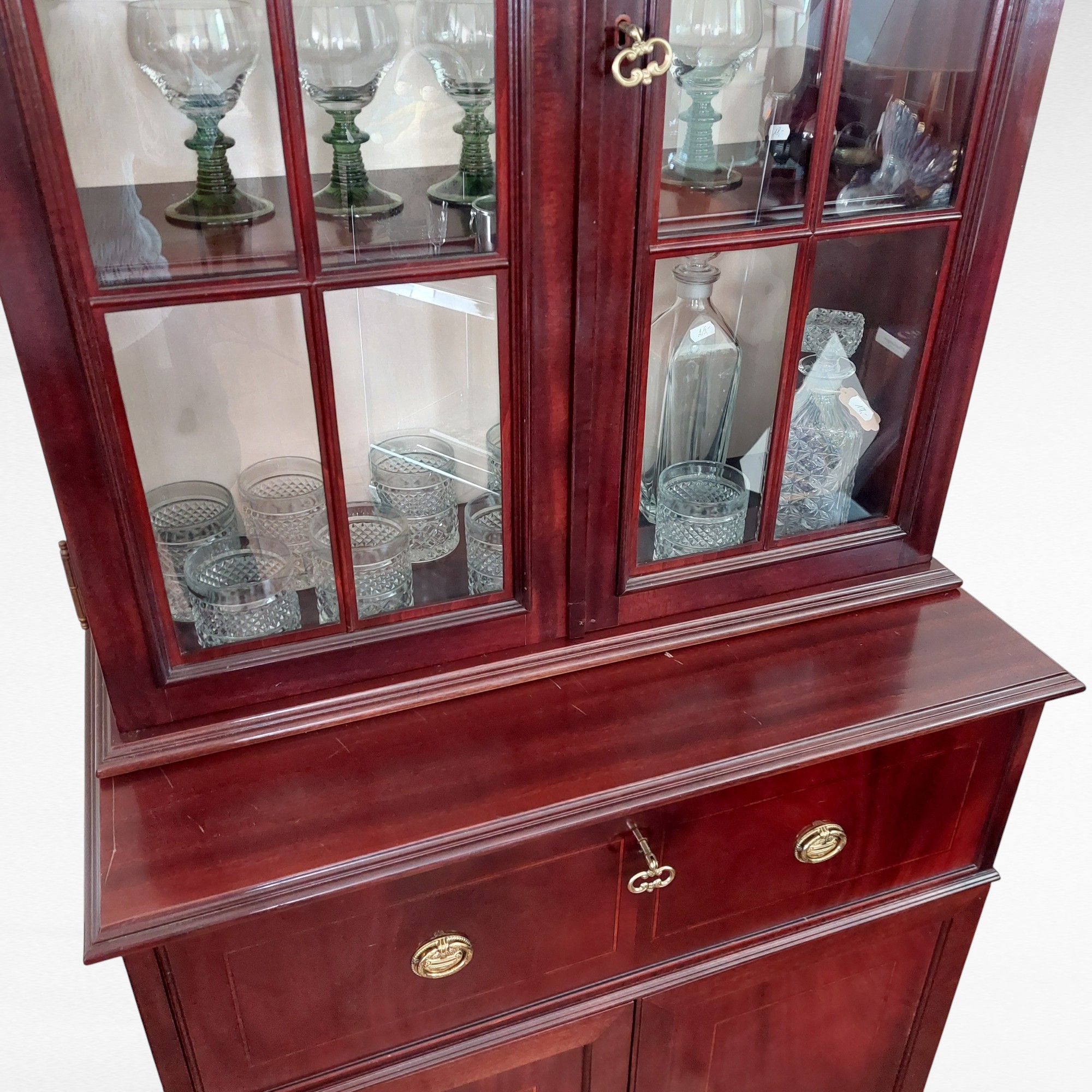 Klasikinio stiliaus itališkas sekreteras, kuriame dera vitrina, rašomasis stalas ir spintelė apačioje.