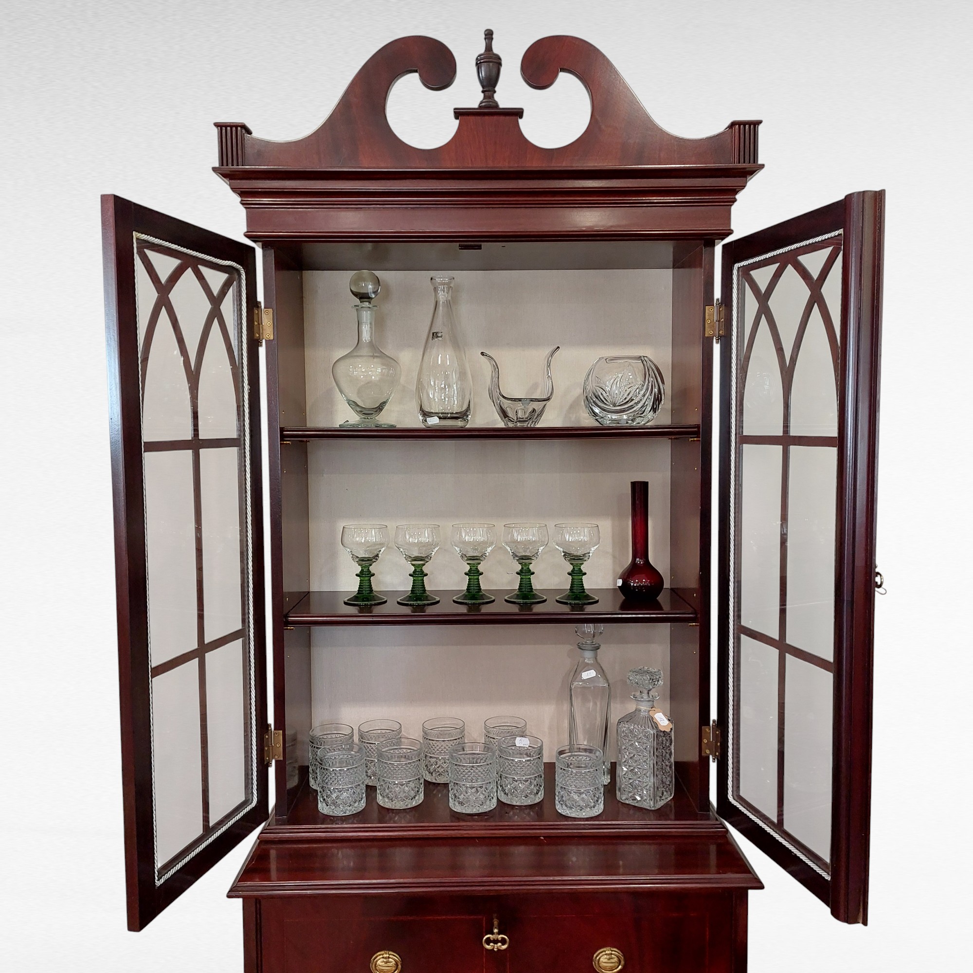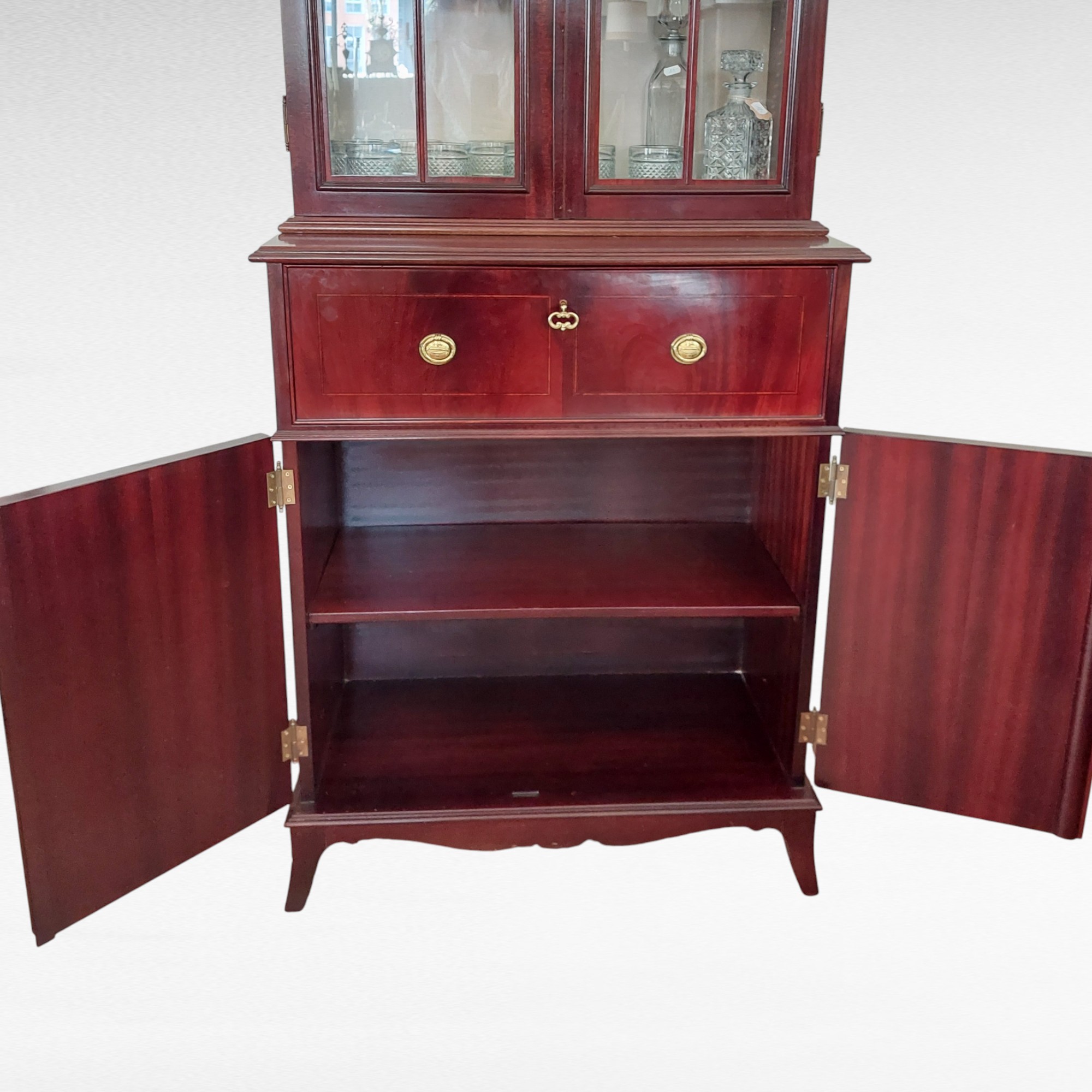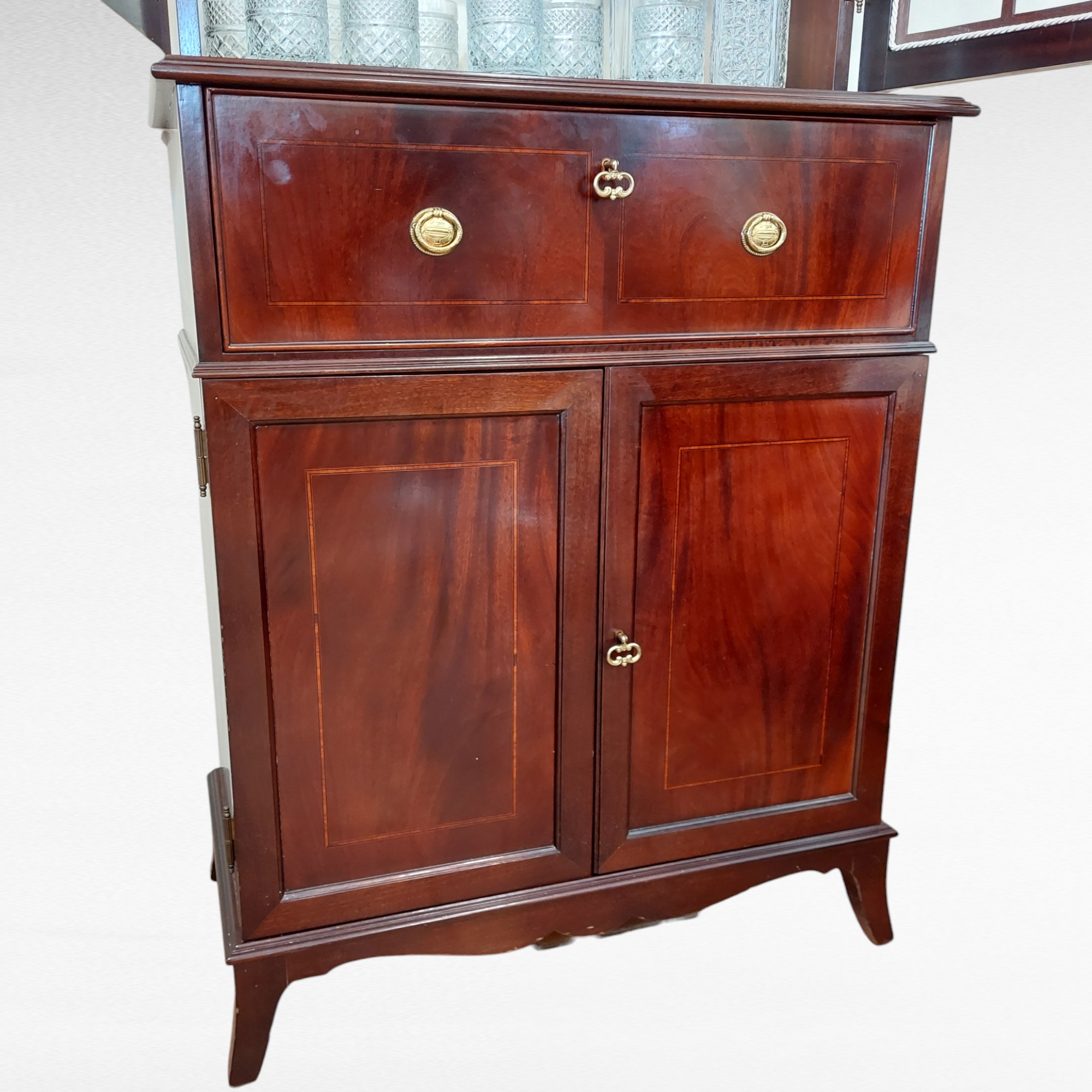 Klasikinio stiliaus itališkas sekreteras, kuriame dera vitrina, rašomasis stalas ir spintelė apačioje.