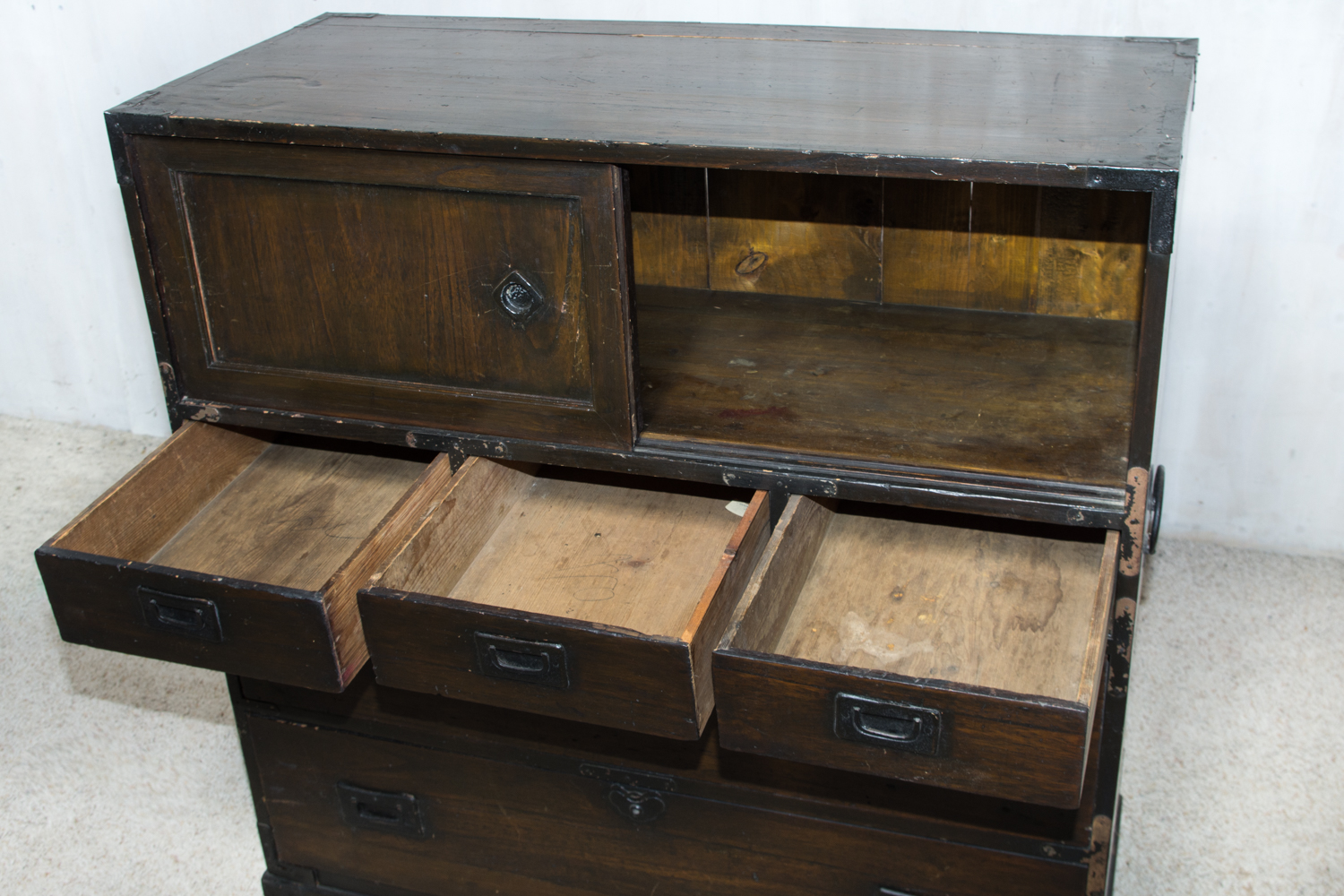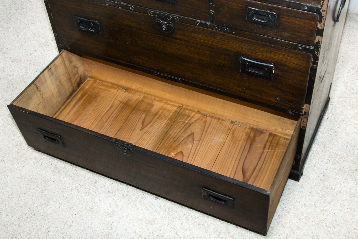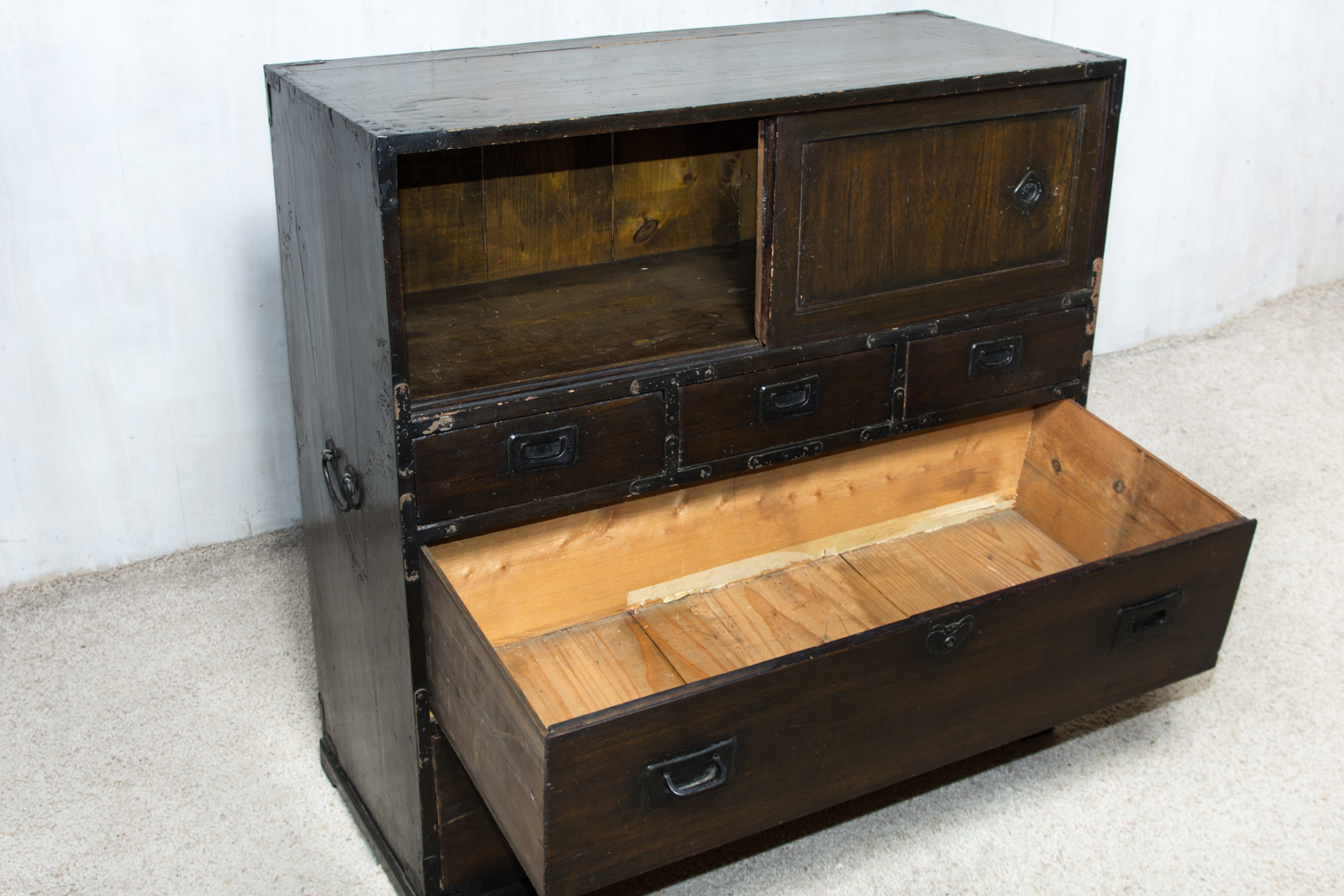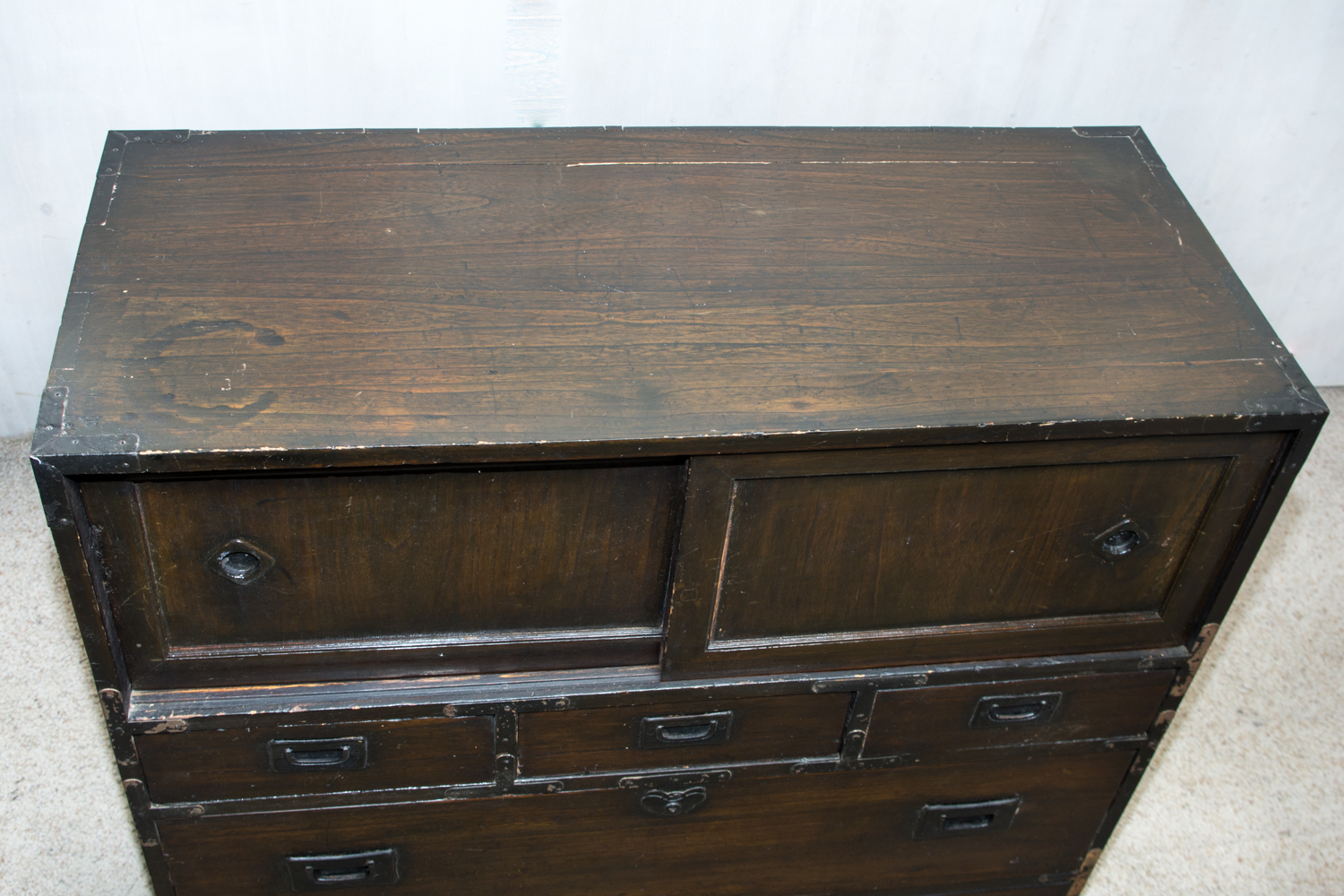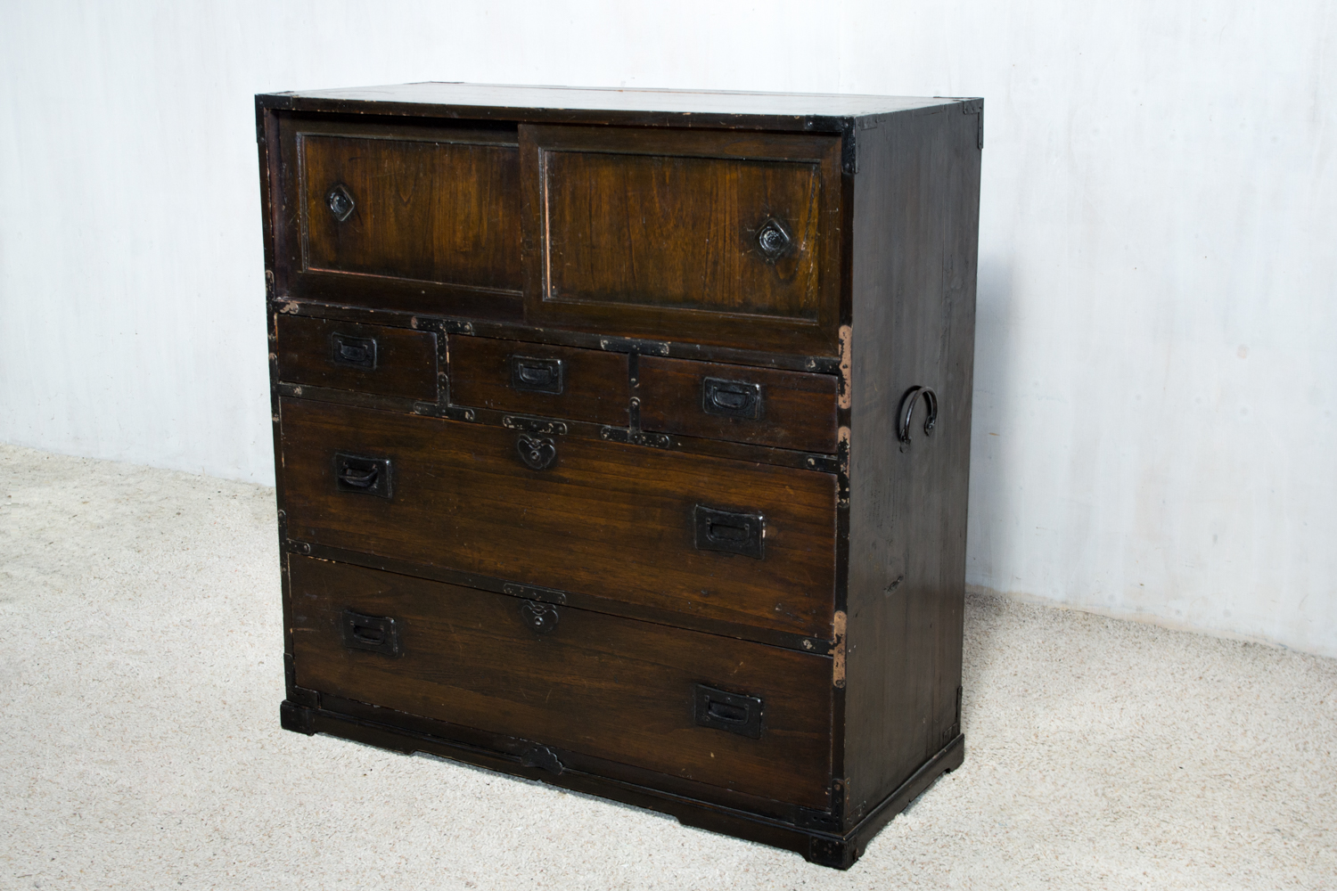 Reta japoniška komoda. Turi stalčius ir dvigubas dureles viršutinėje dalyje, tai būdinga chōba-dansu (prekybos ir verslo reikmėms). Pagaminta iš patvarios medienos, tokios kaip keyaki (zelkova) arba sugi (kedras). Meidži laikotarpis. 19 a.