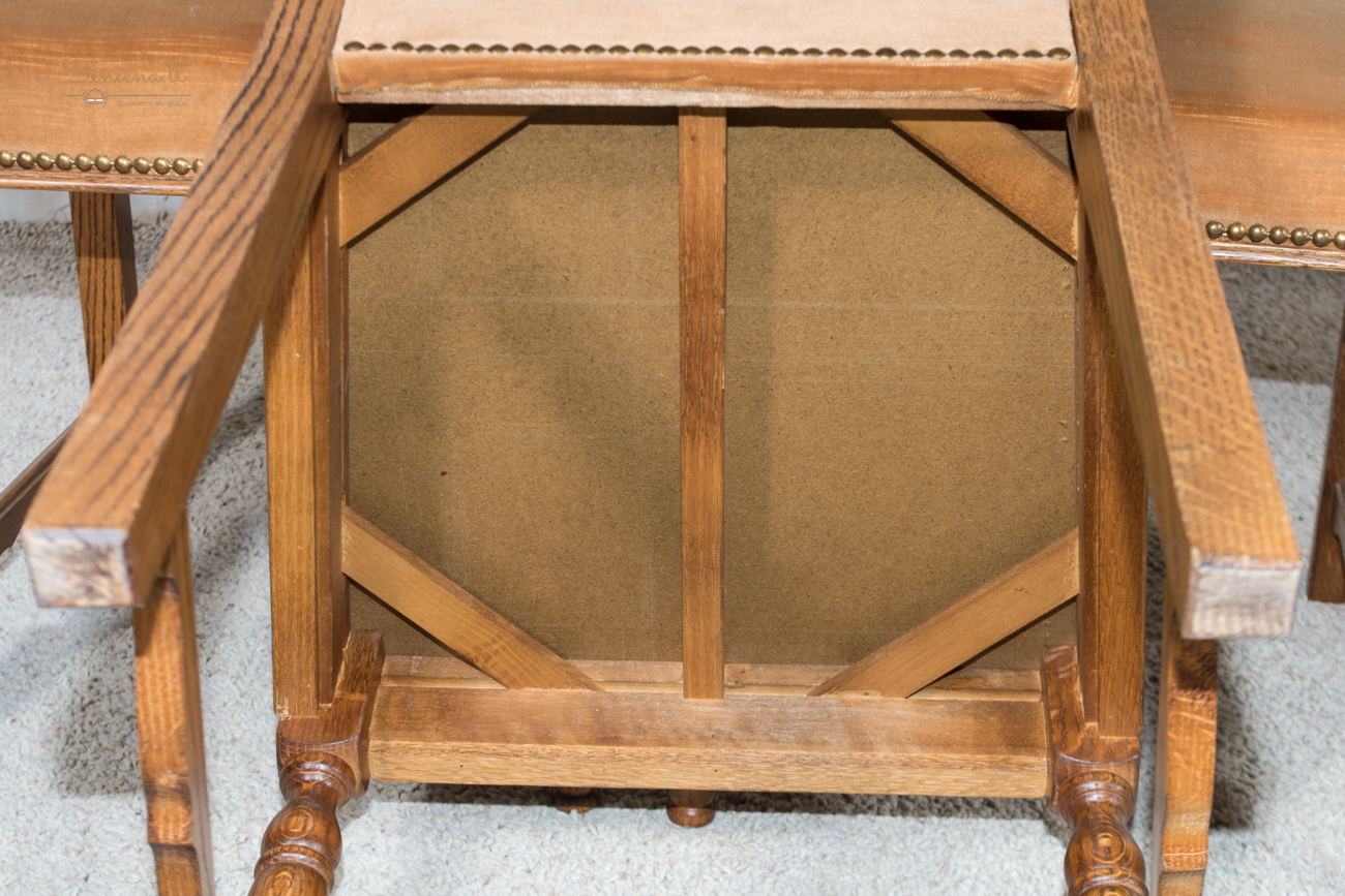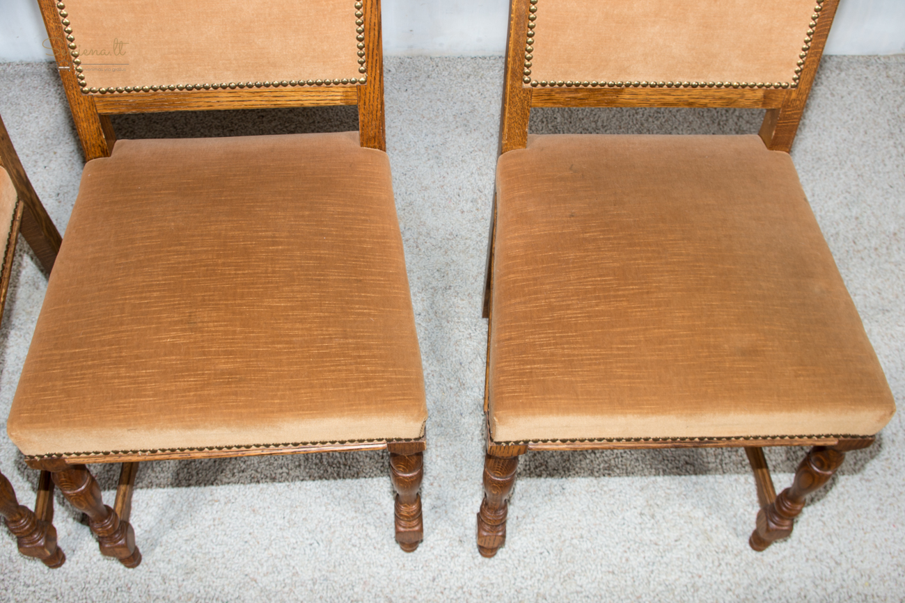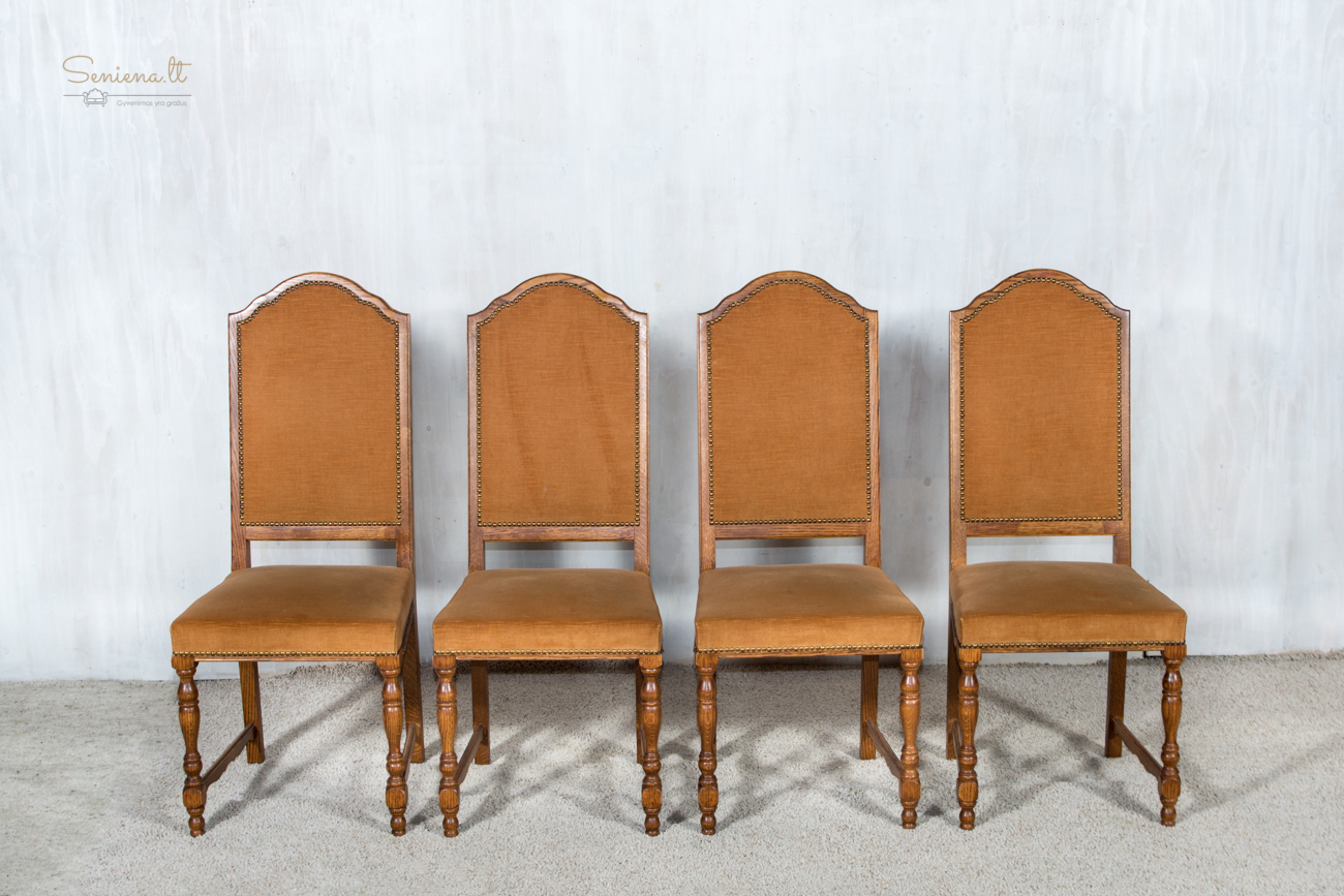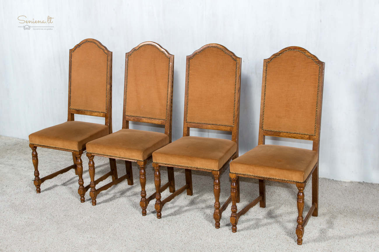 Kėdės 4 vnt. Tvarkingas rudas gobelenas. Tvirtos ir stabilios. Parvežta iš Prancūzijos