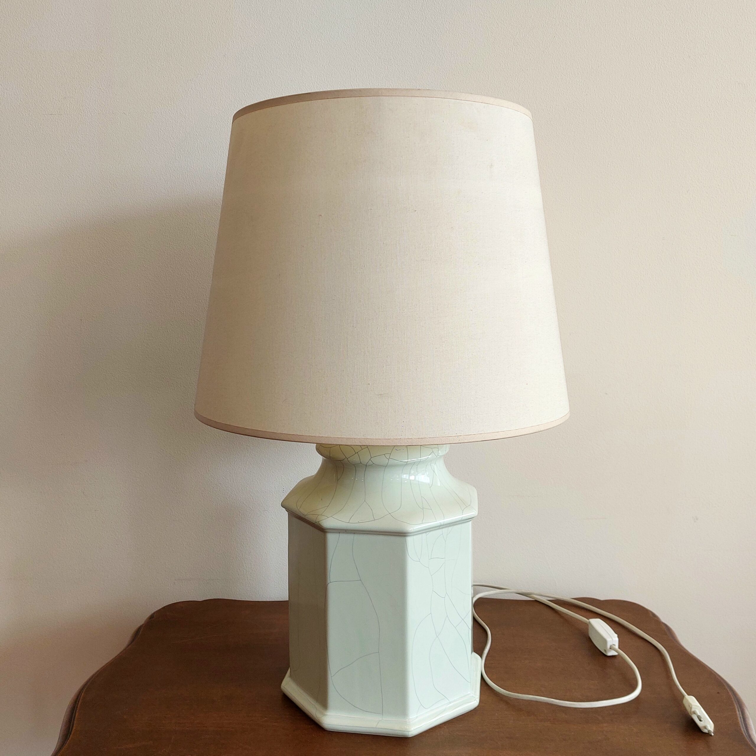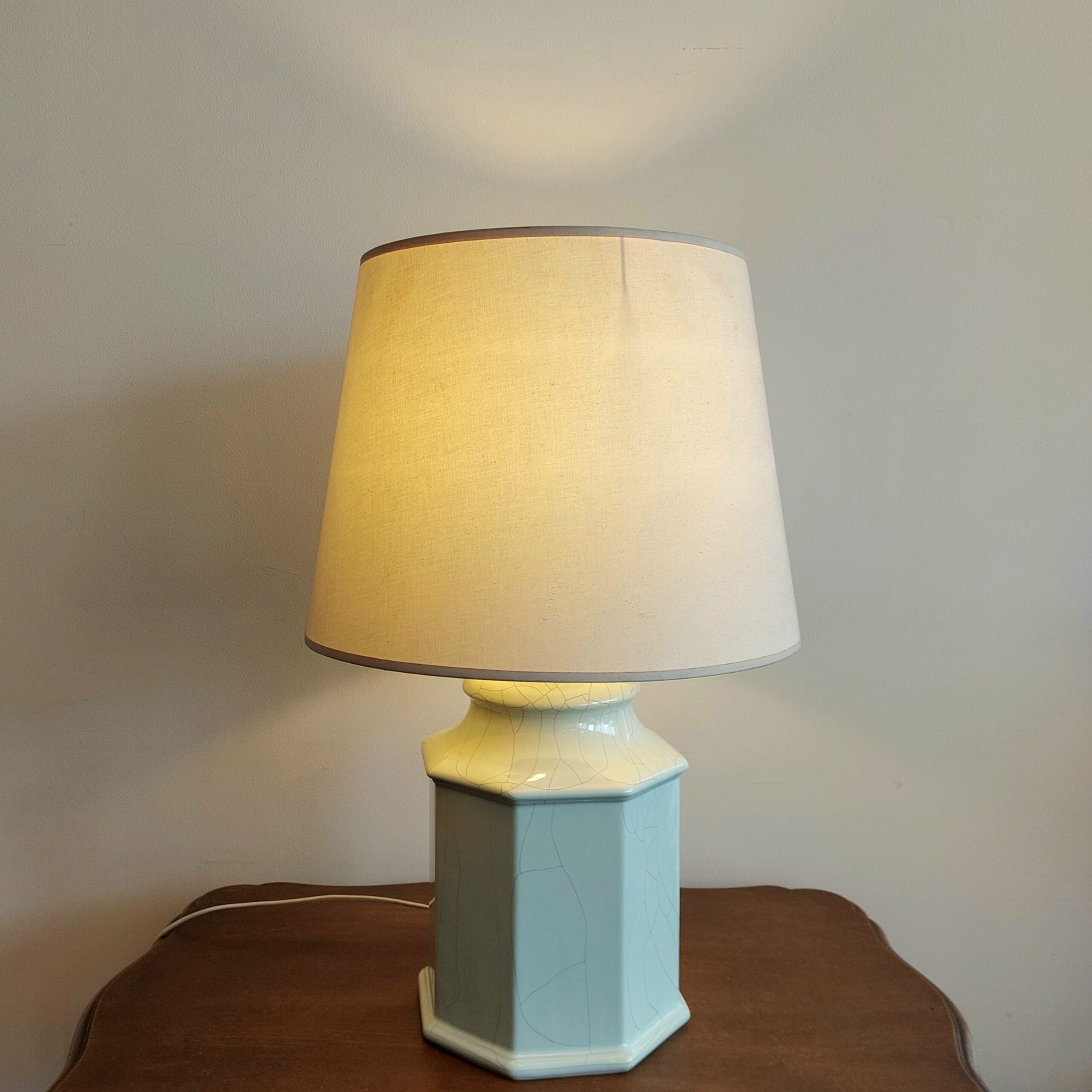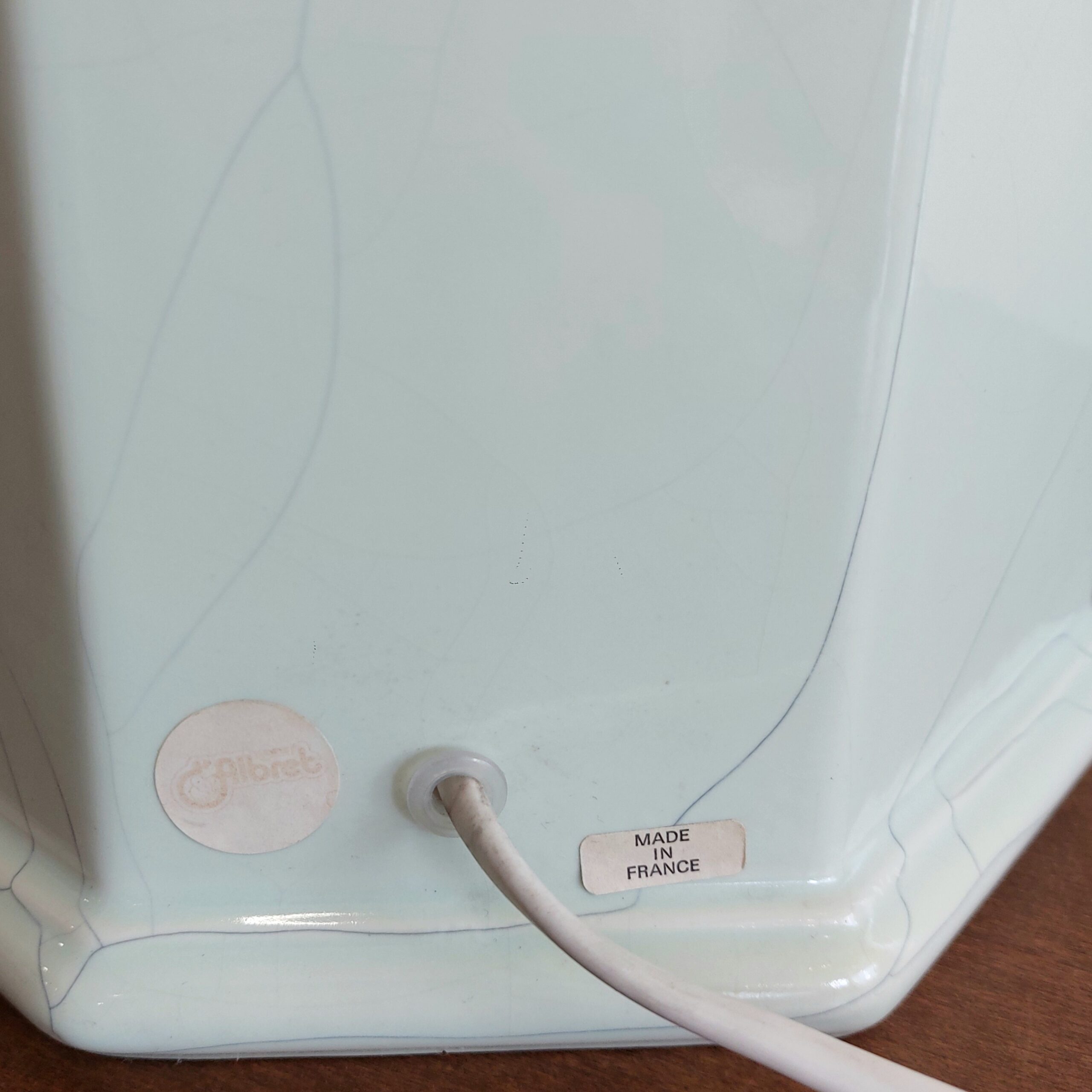 Keramikinė stalinė lempa Albret. Pagamintas apie 1980–1990 m. Šešiakampio pagrindo, glazūruota keramika su krakeliūru. Spalva šviesiai žalsva (mėtinė), švelni, lengvai derinama interjere. Klasikinės formos gaubtas, yra dėvėjimo žymių. Parvežta iš Liuksemburgo, veikianti, su laidu ir jungikliu.
