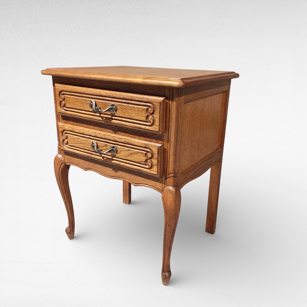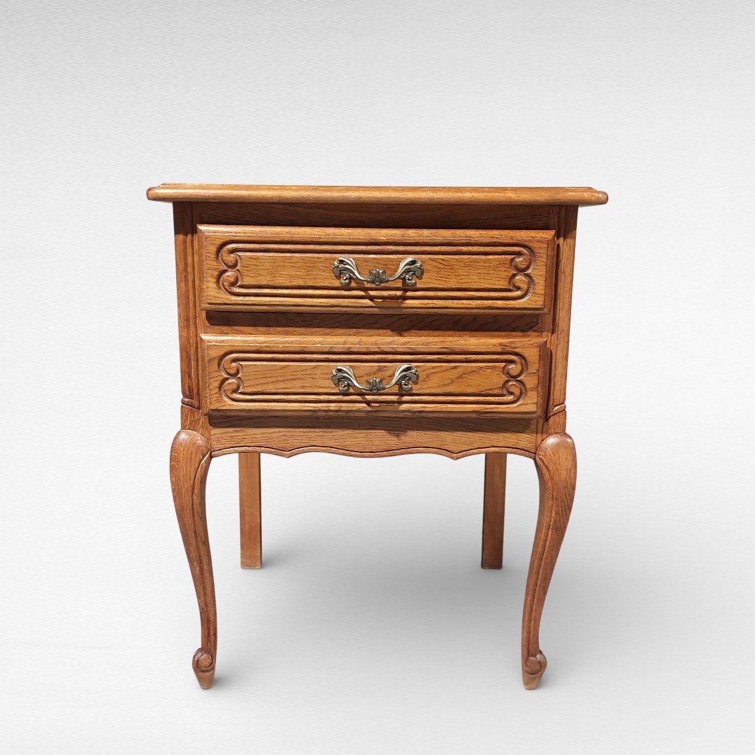 Louis XV stiliaus naktinė spintelė su dviem stalčiais.