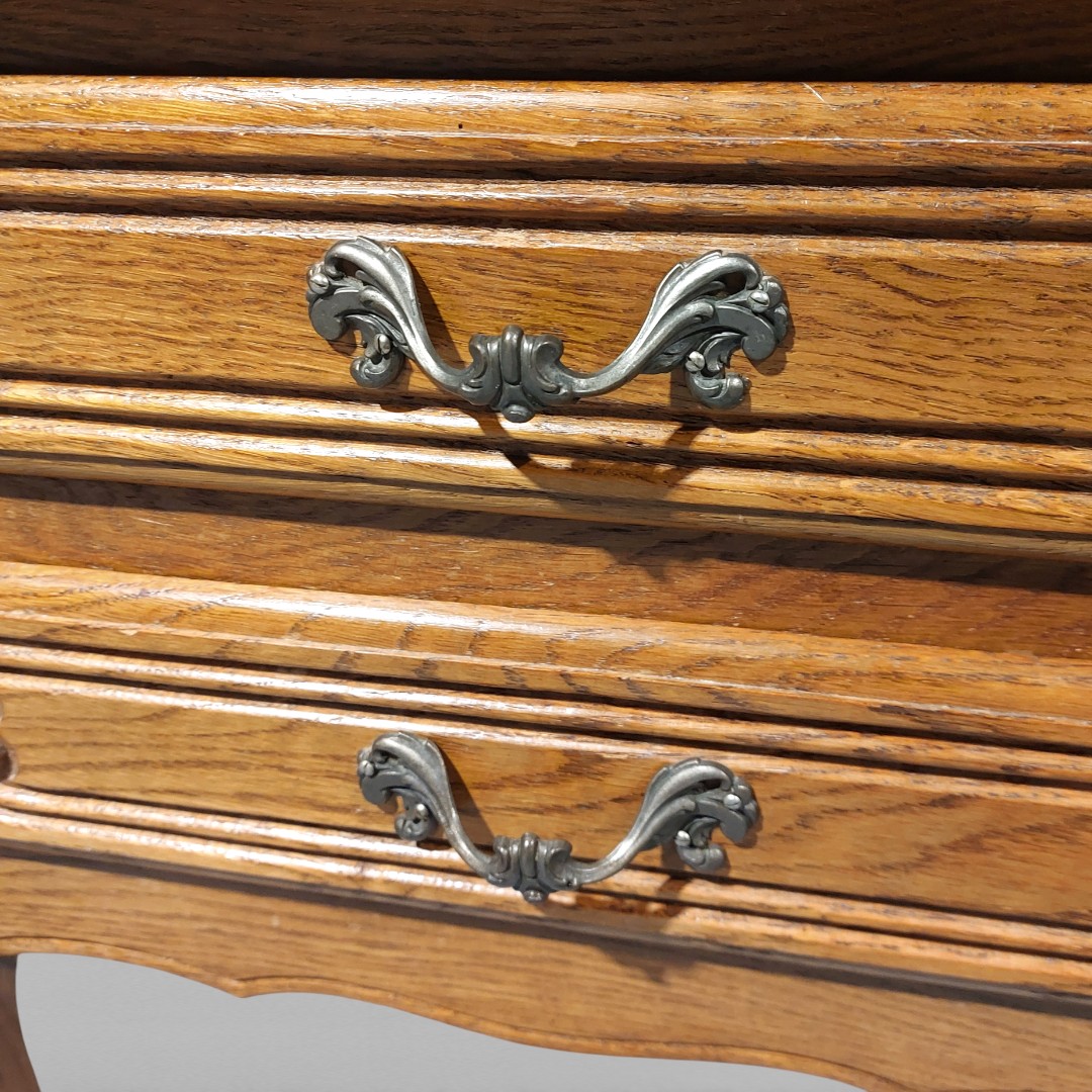 Louis XV stiliaus spintelė su dviem stalčiais. Tvirta, geros būklės. Tinka miegamajam, prieškambariui ar kaip šoninis baldas.