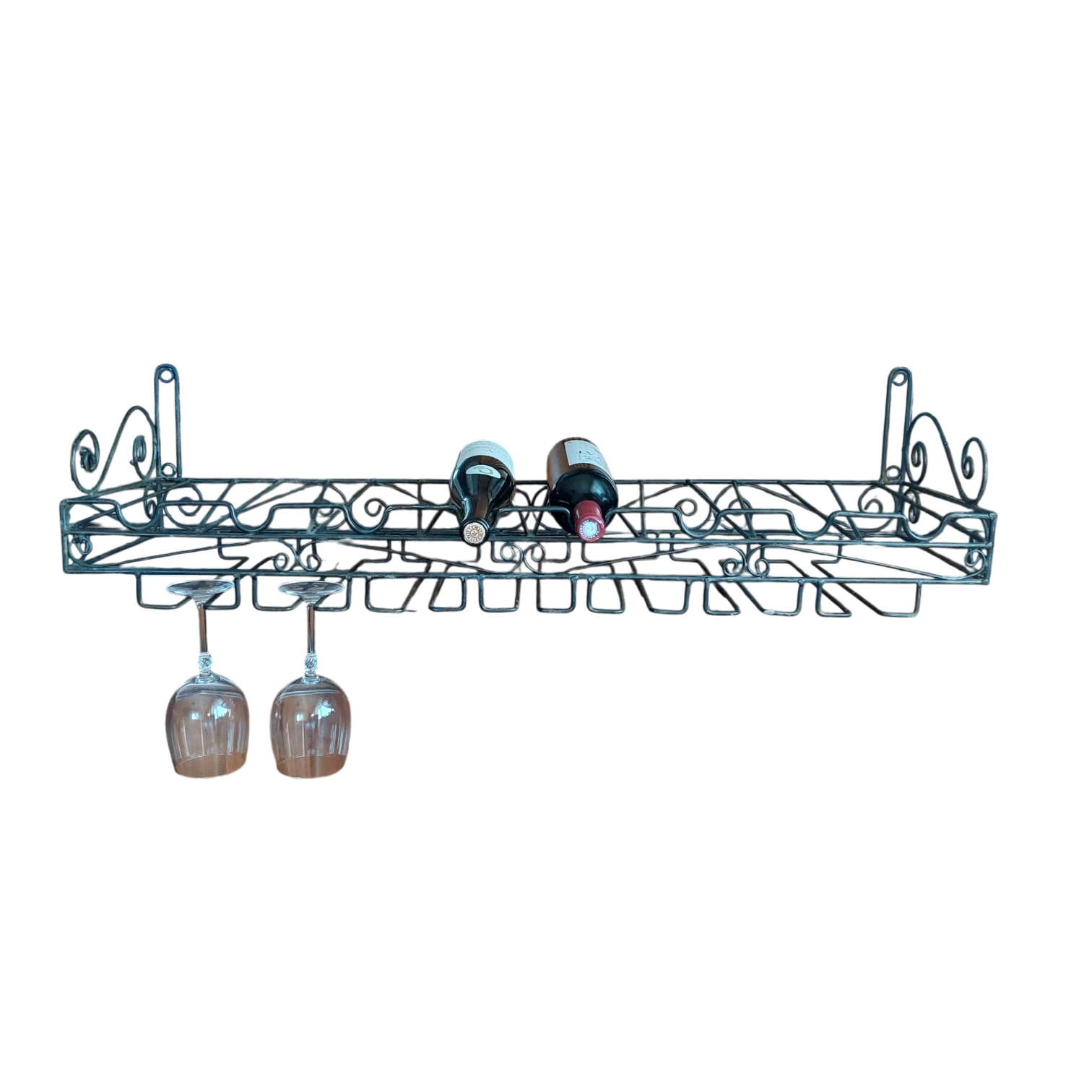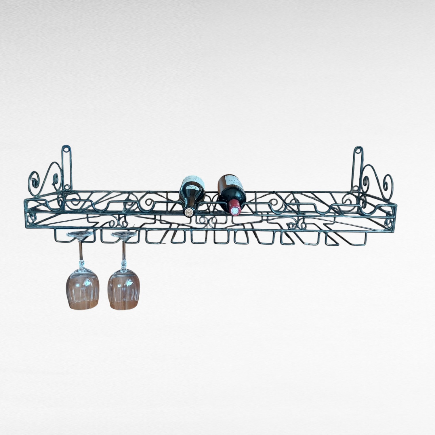 Metalinė vyno lentyna su vieta 8 vyno buteliams ir 21 taurei. Tvirto metalo konstrukcija, matinė juoda apdaila. Praktiškas sprendimas virtuvei ar valgomajam.