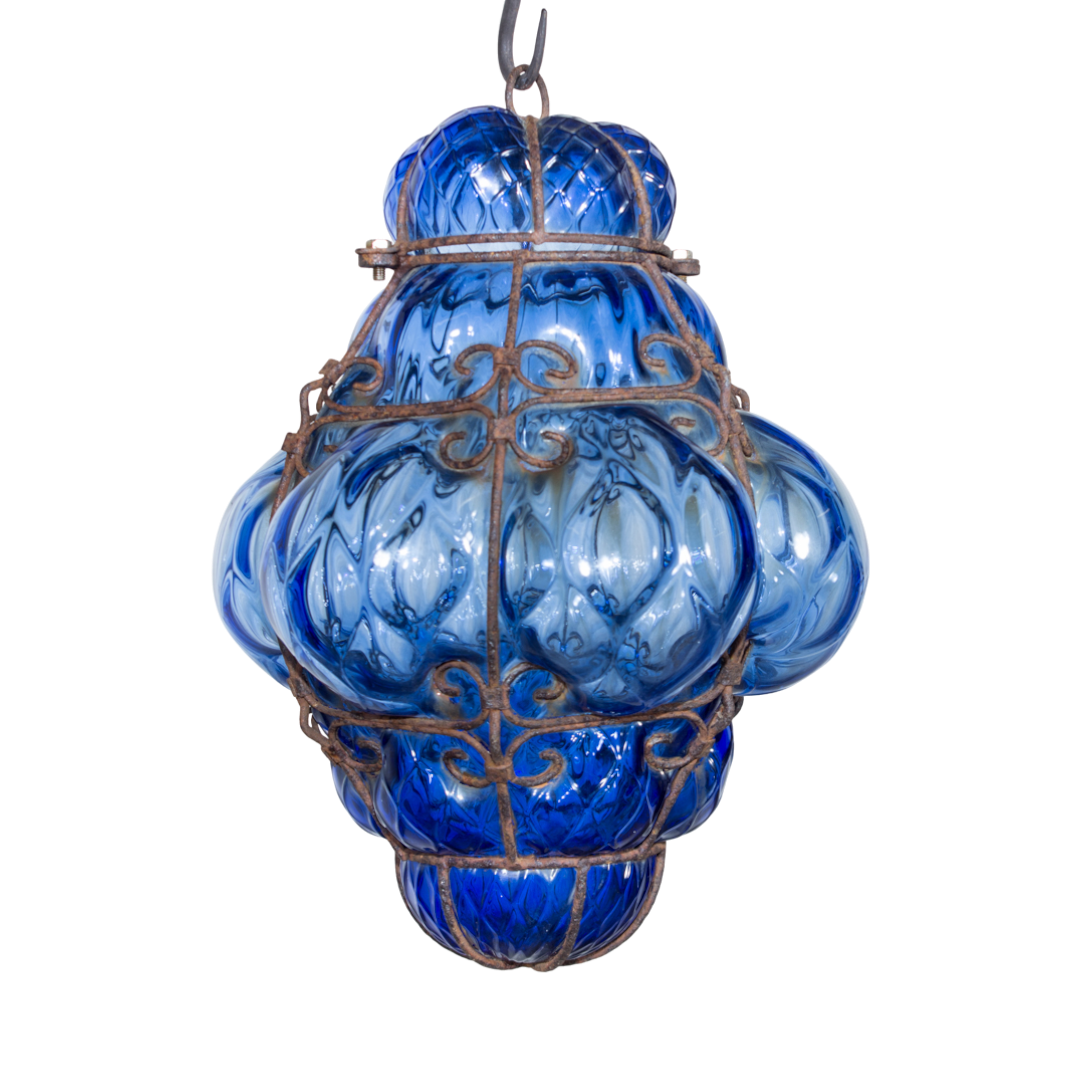 Rankų darbo Murano stiklo kabamieji žibintai su metaliniu karkasu. Pūsto stiklo burbulai dekoruoti subtiliais raštais, o šviesa per juos sklinda minkštai ir šiltai. Pagaminti Italijoje, apie 1940 m. Unikalus interjero akcentas.