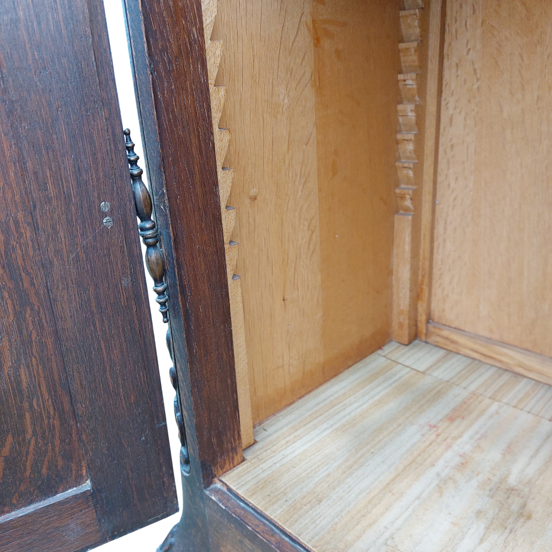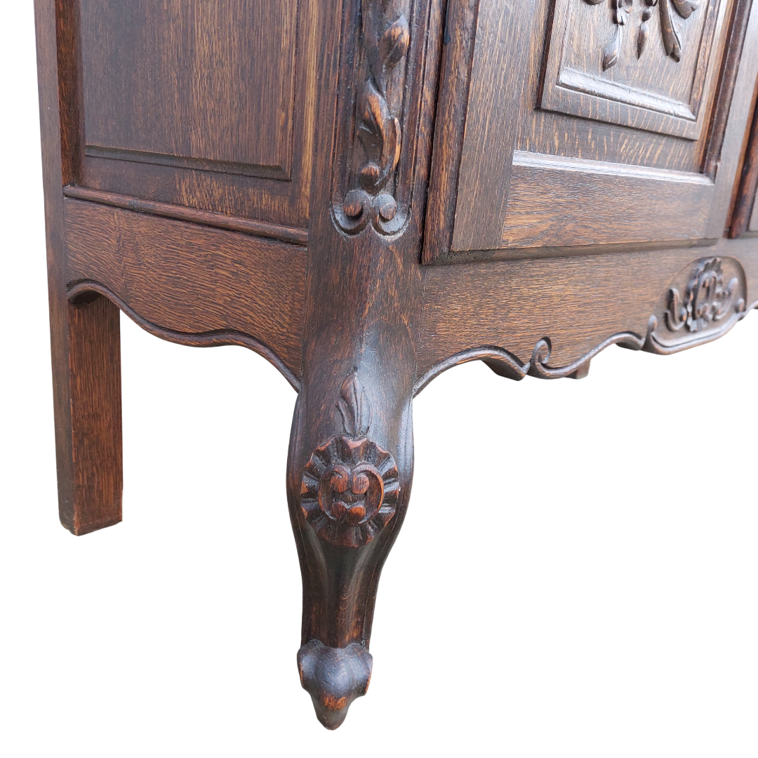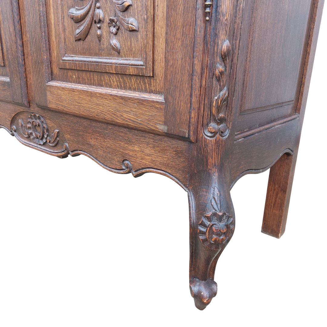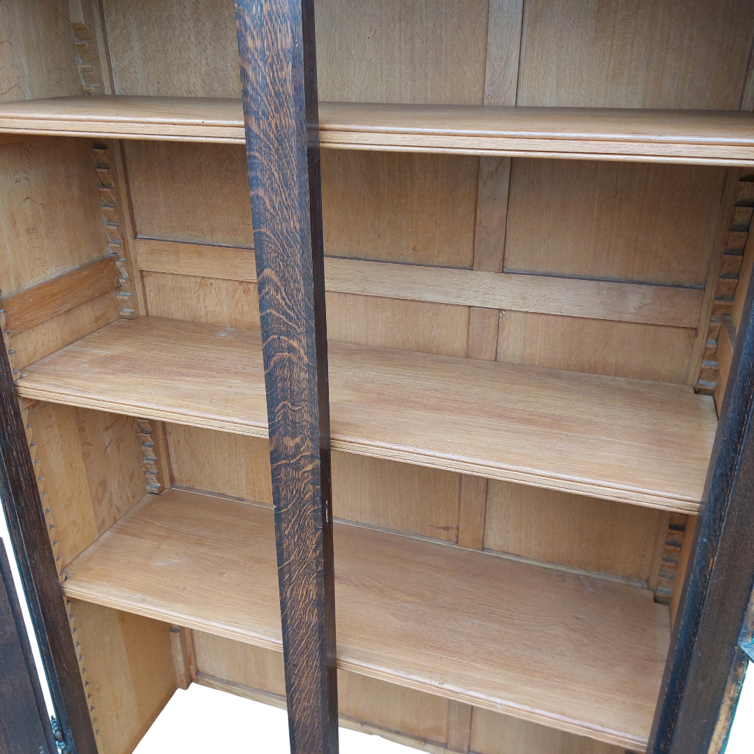 Ąžuolinė dviejų durų vitrina, sukurta pagal Liudviko XV stiliaus tradicijas. Lenktos linijos, kabriolė kojelės ir augaliniai raižiniai suteikia jai būdingą to laikotarpio formą. Viduje yra reguliuojamos lentynos, tinka indams ar knygoms. Būklė tvarkinga. Parvežta iš Prancūzijos.