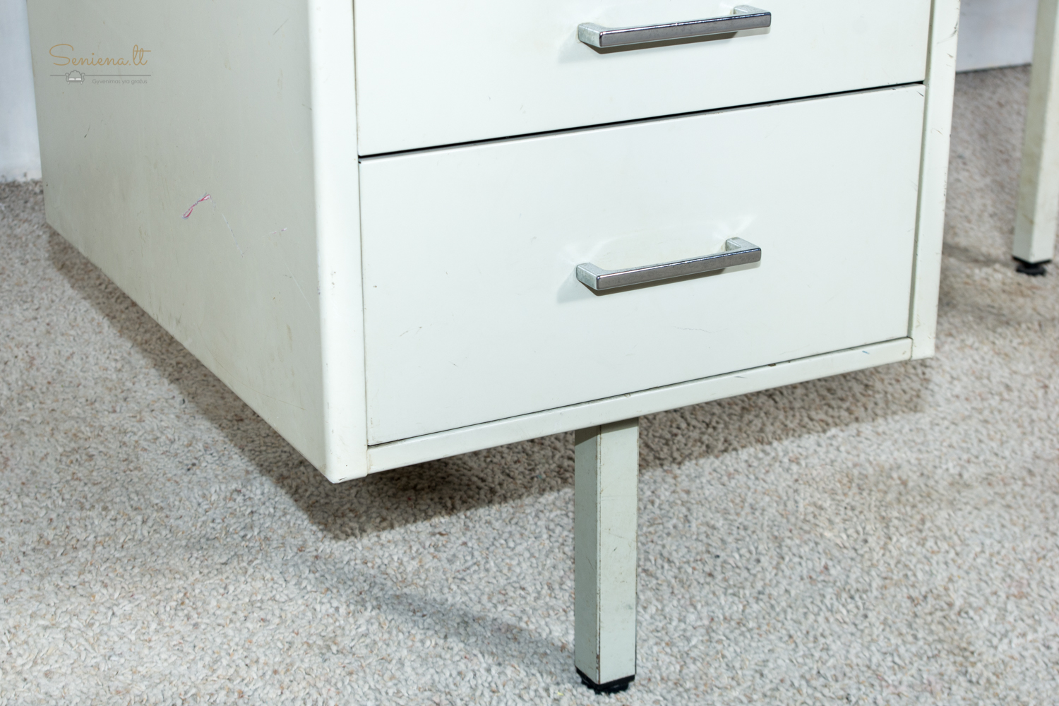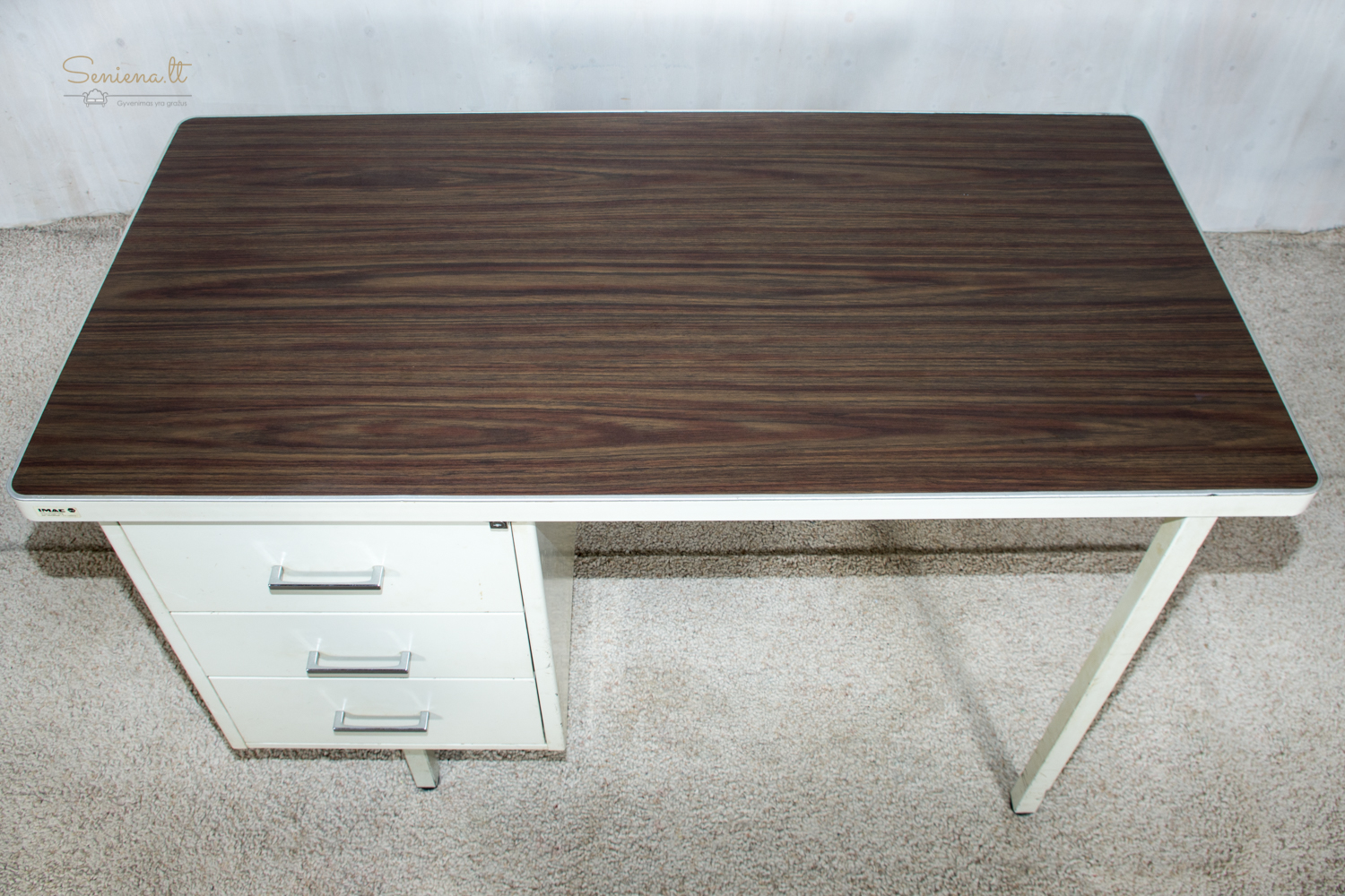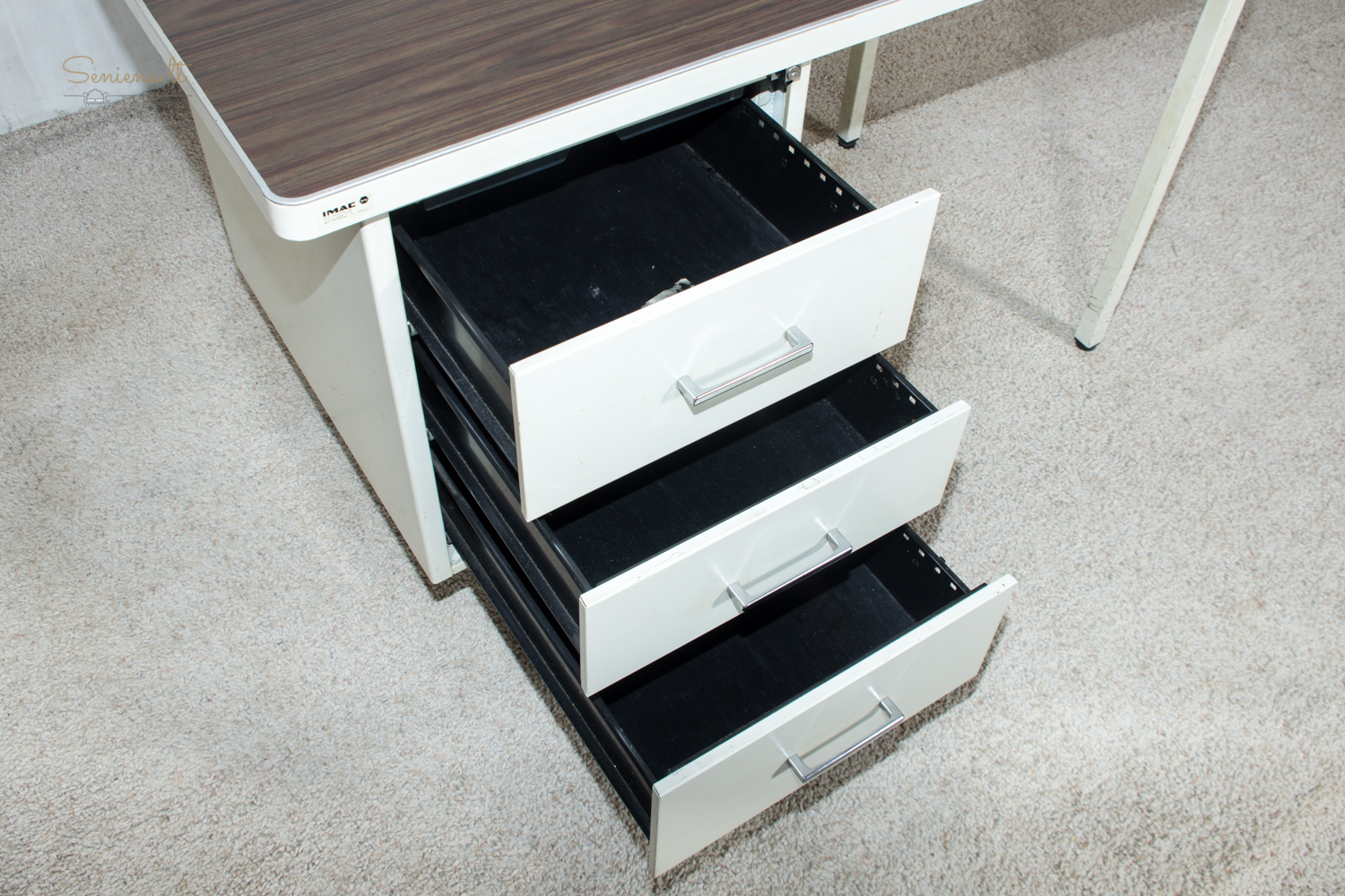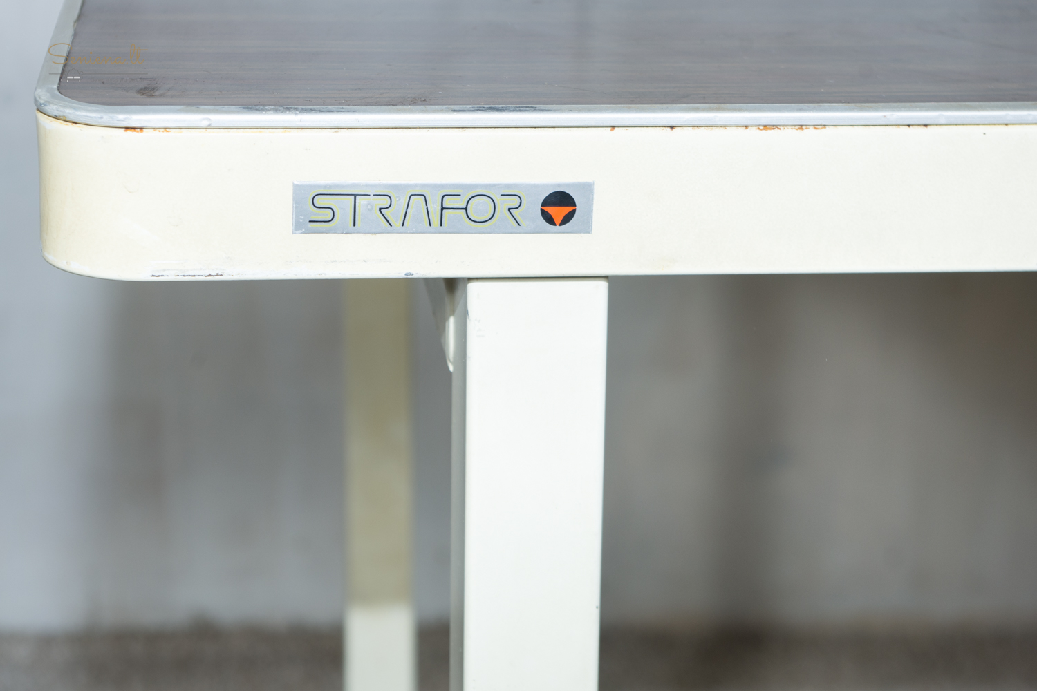Vintažinis metalinis rašomasis stalas, industrinis stilius, pagaminta Prancūzijoje apie 1960-70 m., gamintojas “Strafor”. Nėra raktelio stalčiams rakinti.