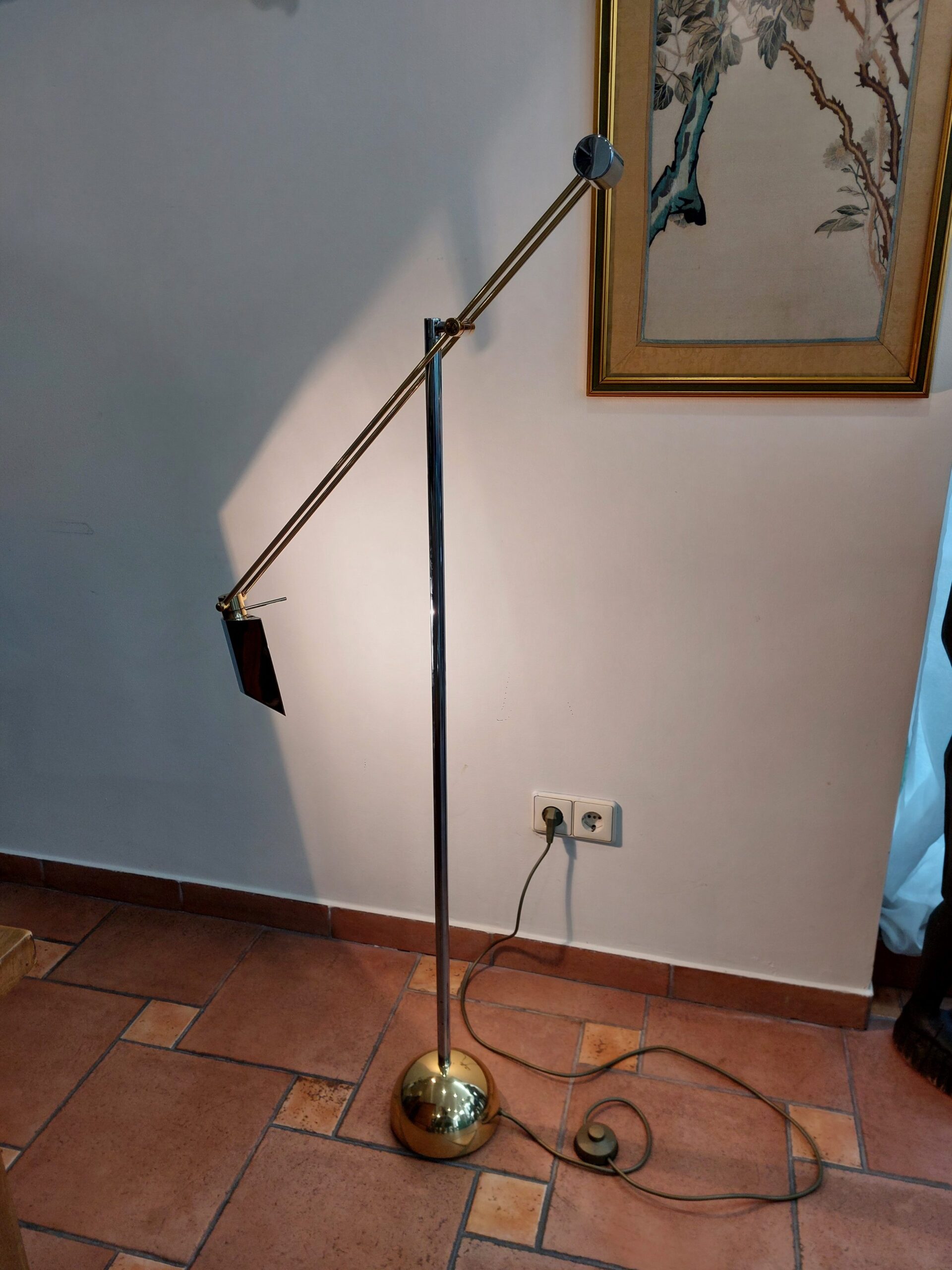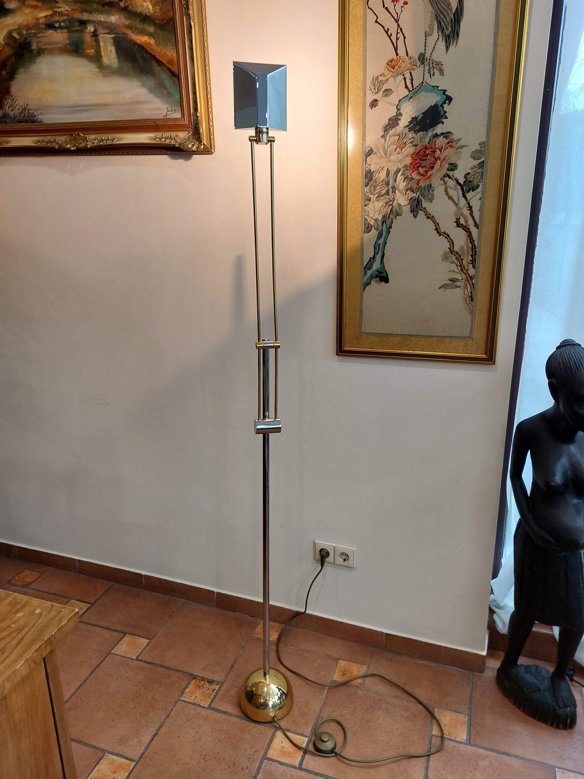 Grindų lempa iš Vokietijos, sukurta apie 1970-uosius. „Sölken-Leuchten“ gamintojo darbas – tai mid-century modern dizainas, kur svarbu ne tik funkcija, bet ir forma.
