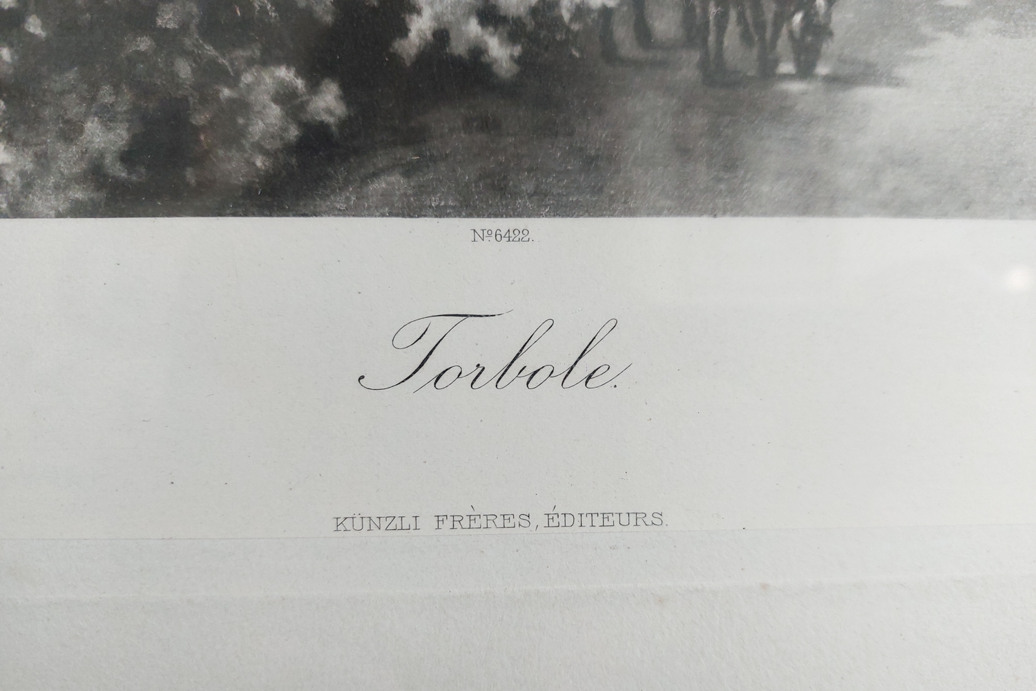 Torbole spaudinys pagal J. Fanti kūrinį, išleistas 1912 m. leidyklos „Künzli Frères“ Tai Gardos ežero pakrantės peizažas su Italijos miestelio panorama kalnų fone. Vaizdas perteiktas chromolitografijos technika, būdinga XX a. pradžiai, kai spalvos buvo sluoksniuojamos keliais spaudos etapais, o detalės dažnai papildomai retušuojamos ranka. Apačioje nurodytas leidybos numeris – Nr. 6429. Leidėjas „Künzli Frères“ buvo žinomas Šveicarijoje ir Prancūzijoje dėl kokybiškų iliustracijų ir meno leidinių. Įrėminta klasikiniu mediniu rėmu.