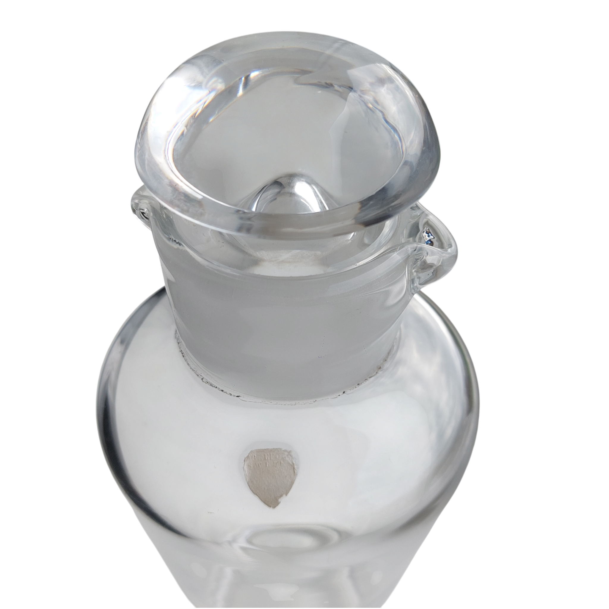 Skaidraus krištolo dekanteris iš garsiosios Švedijos stiklo manufaktūros „Orrefors“, sukurtas dizainerio Vicke Lindstrand apie 1936 m.