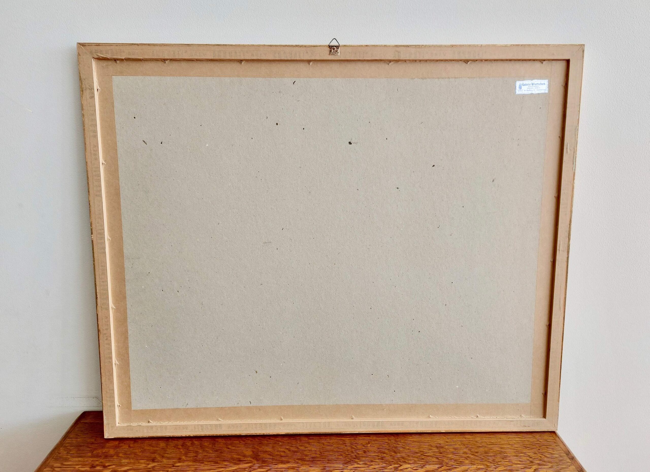 Atspaudas įrėmintas Galerie Wierschem galerijoje (Liuksemburge), mediniame rėme su stiklu.