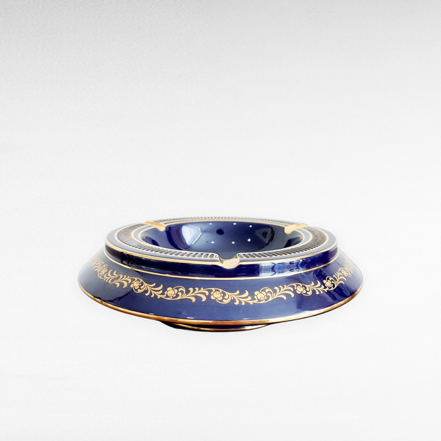 Vintažinė itališka „Florentine“ stiliaus peleninė iš kobalto mėlynos spalvos porceliano su aukso dekoru.
