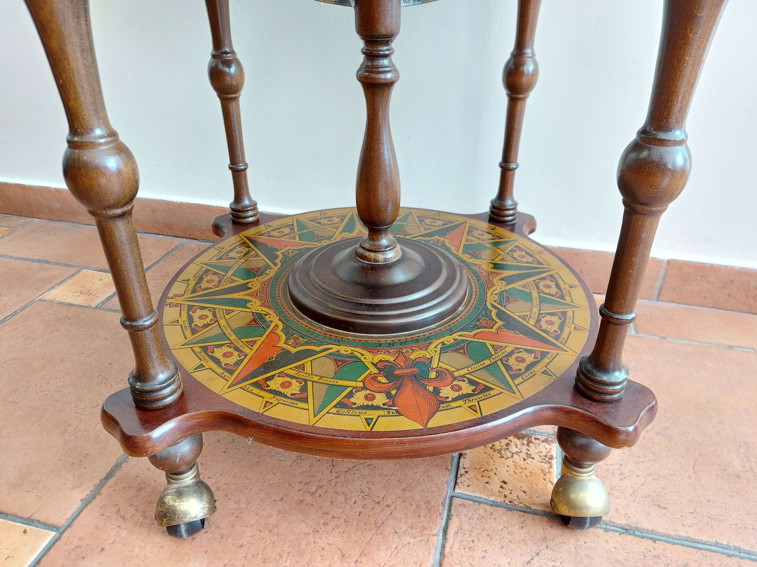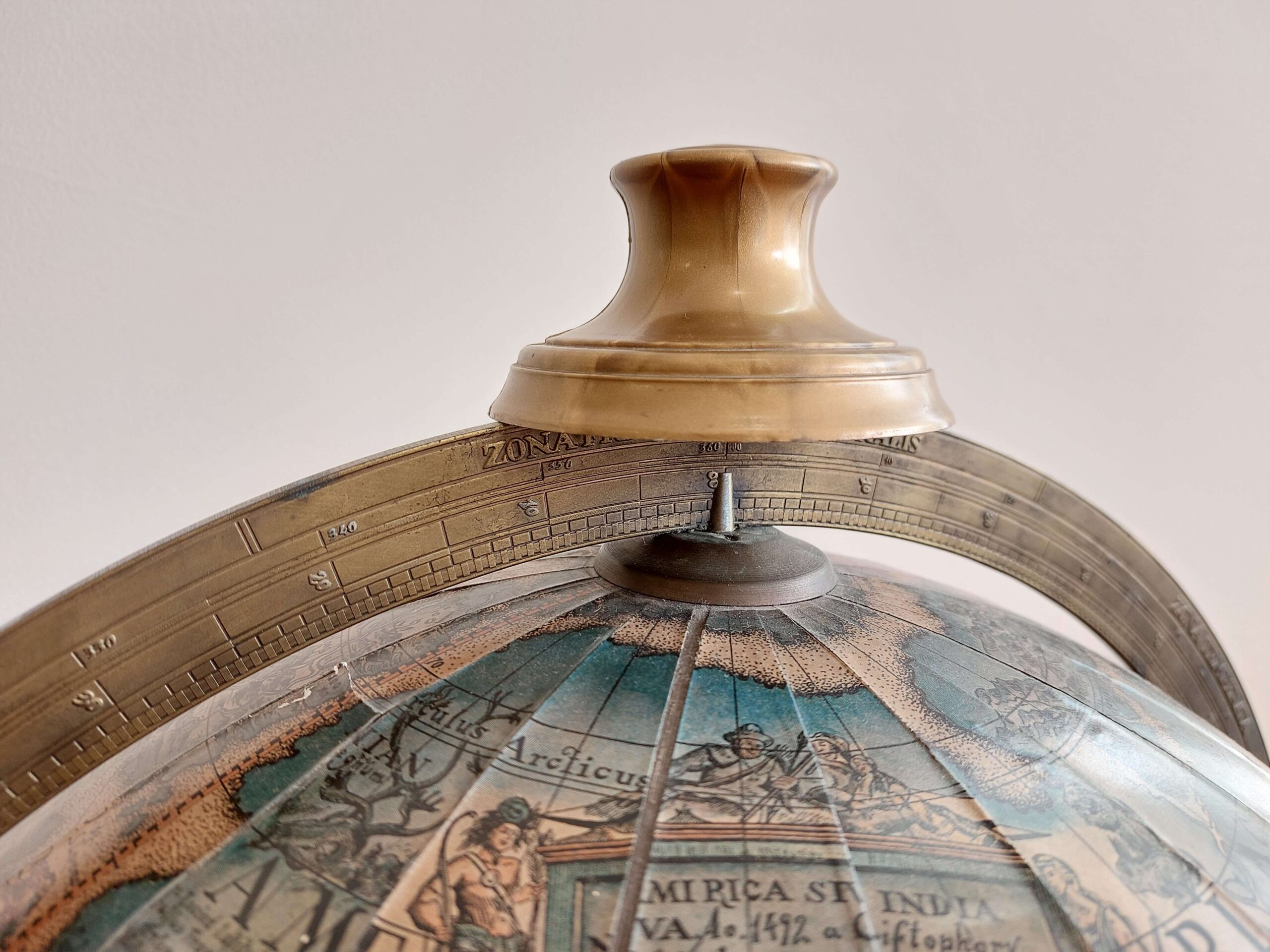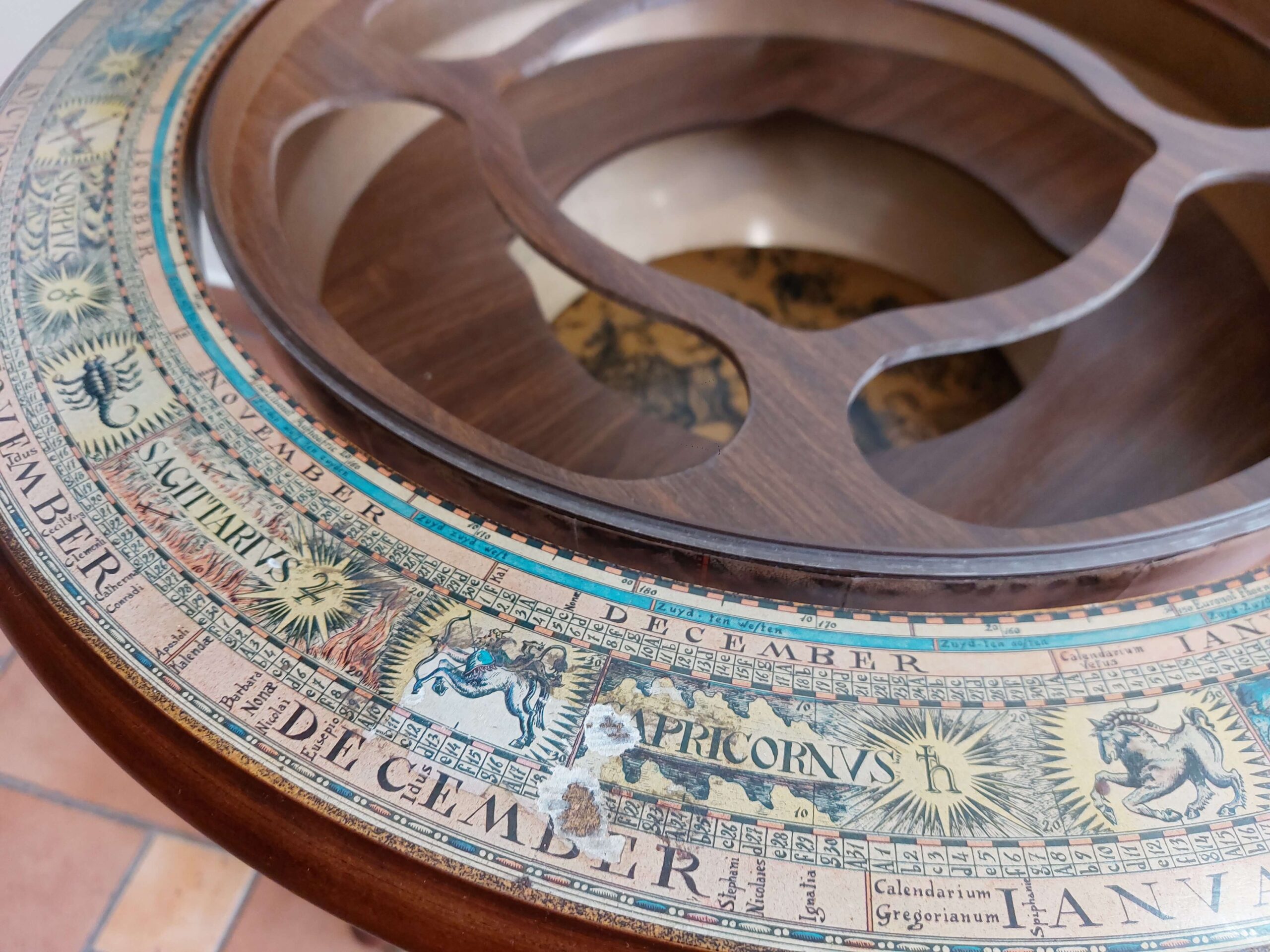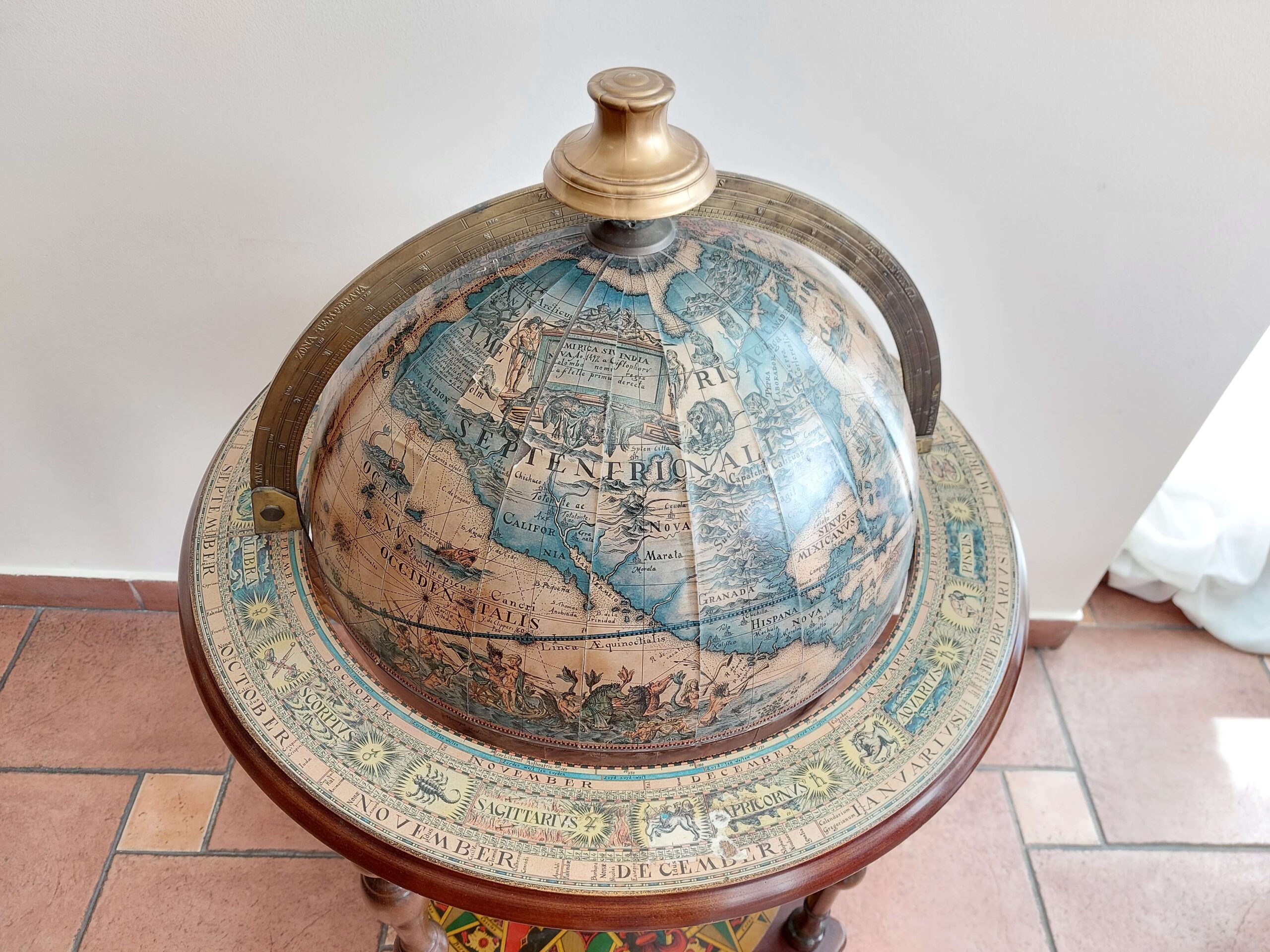 Vintažinis baro gaublys, parvežtas iš Prancūzijos. Datuojamas apie 1960 m. Tai dekoratyvus ir kartu praktiškas interjero baldas su senovinio žemėlapio spauda. Gaublys atsidaro – viduje įrengtas baro skyrius keliems buteliams ir taurelėms. Dekoras perteikia XVI–XVII a. pasaulio žemėlapių stilistiką: lotyniški vėjų pavadinimai, zodiako ženklai, kompaso motyvai. Gaublys lengvos konstrukcijos, nestandartinio dydžio, stovi ant ratukų – galima patogiai judinti. Yra naudojimo žymių: kraštuose – pažeidimų, spauda vietomis pasitrynusi, bet bendra būklė – stabili, daiktas tinkamas naudoti ir eksponuoti.